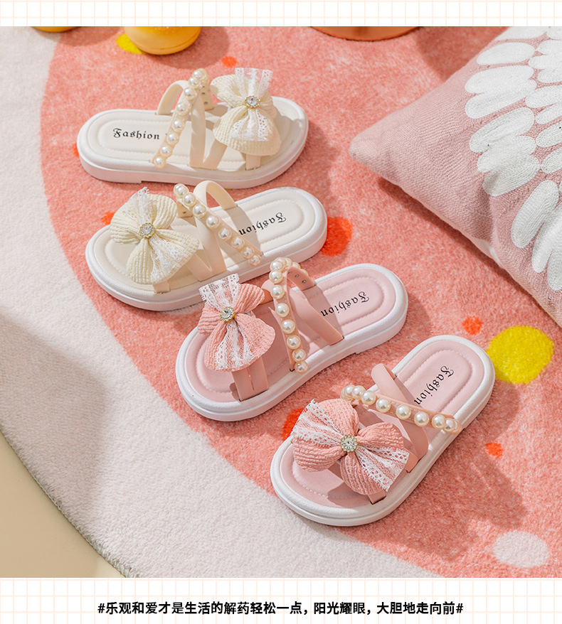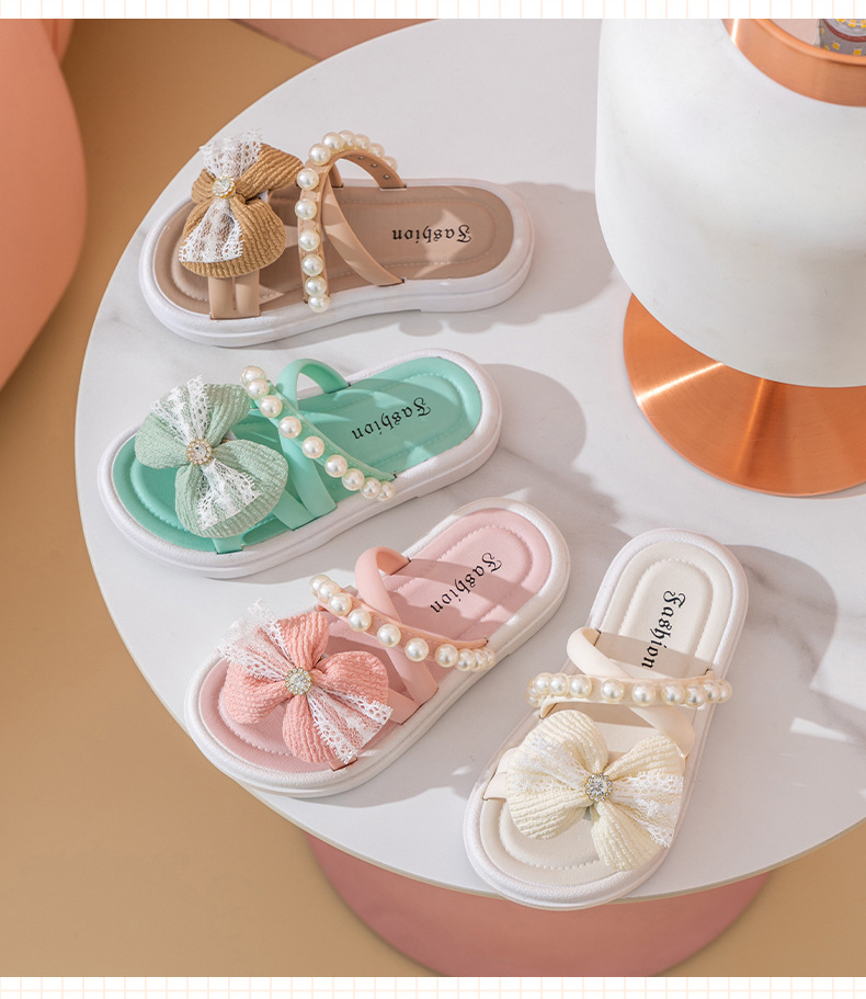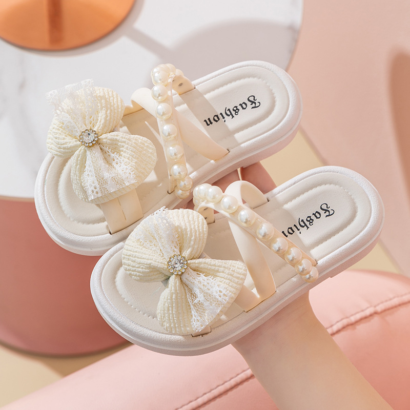 공주 신발 비치 신발 소녀의 여름 새로운 어린이 어린 소녀의 부드러운 단독 미끄럼 방지 진주 겉옷 모든 매치 샌들