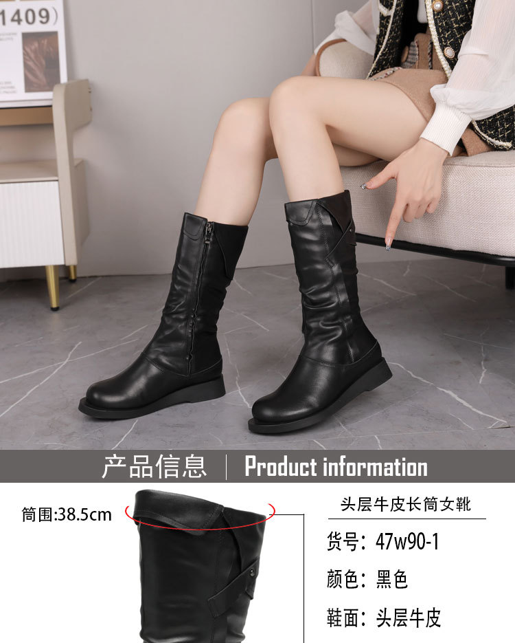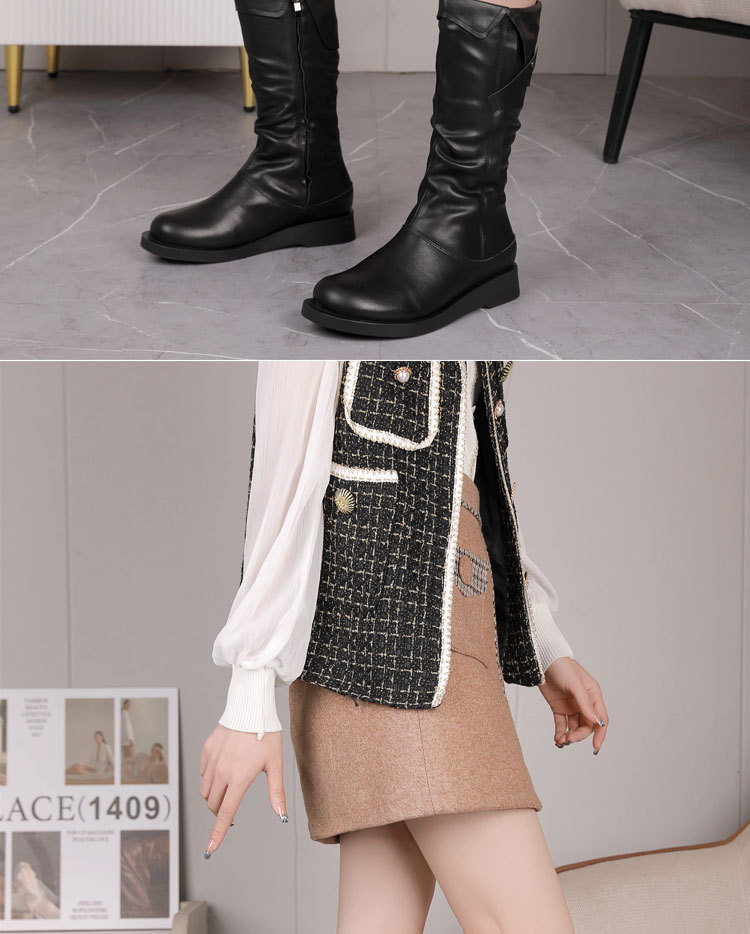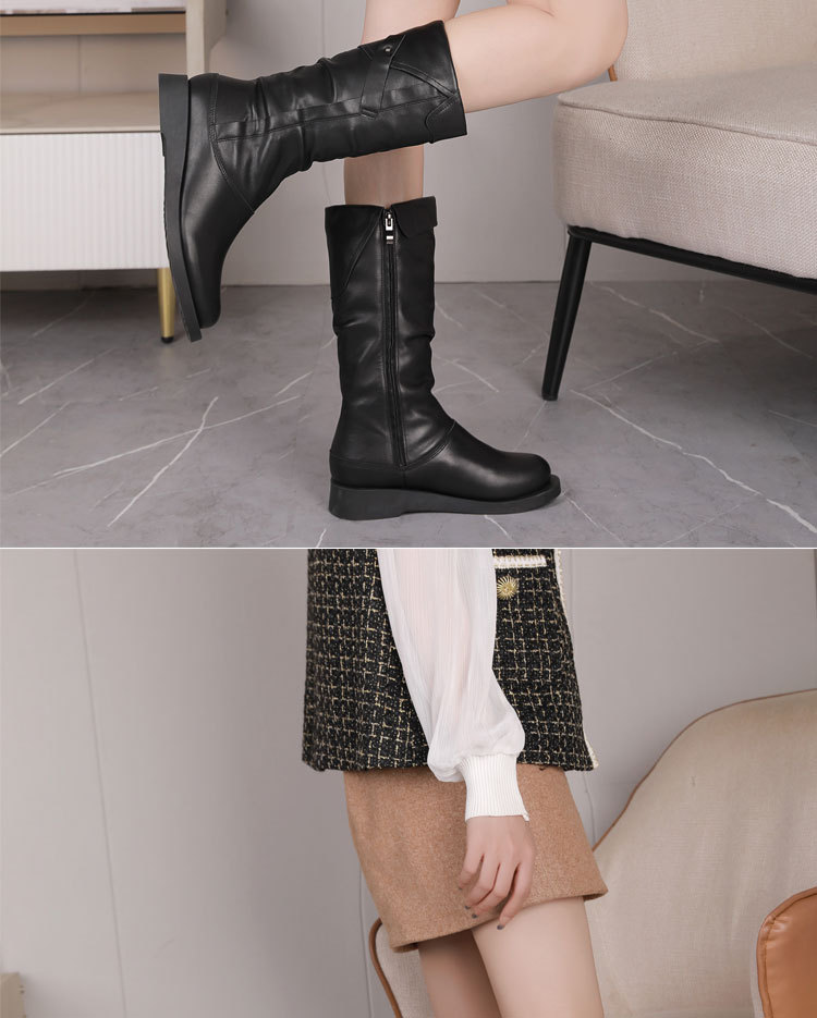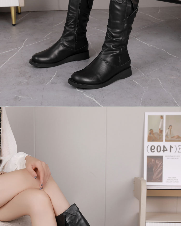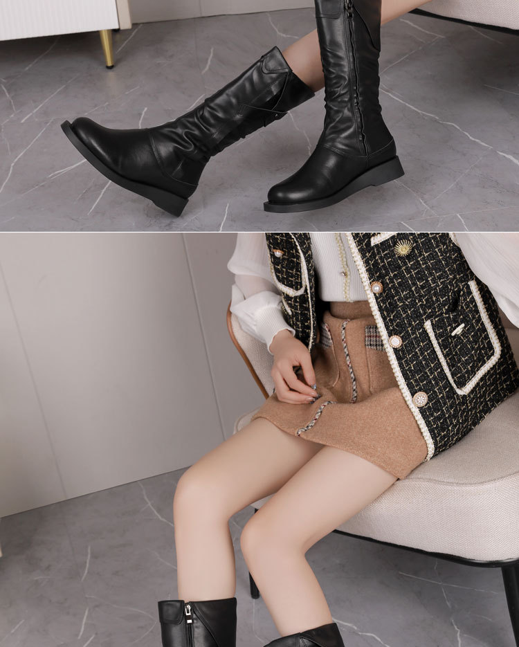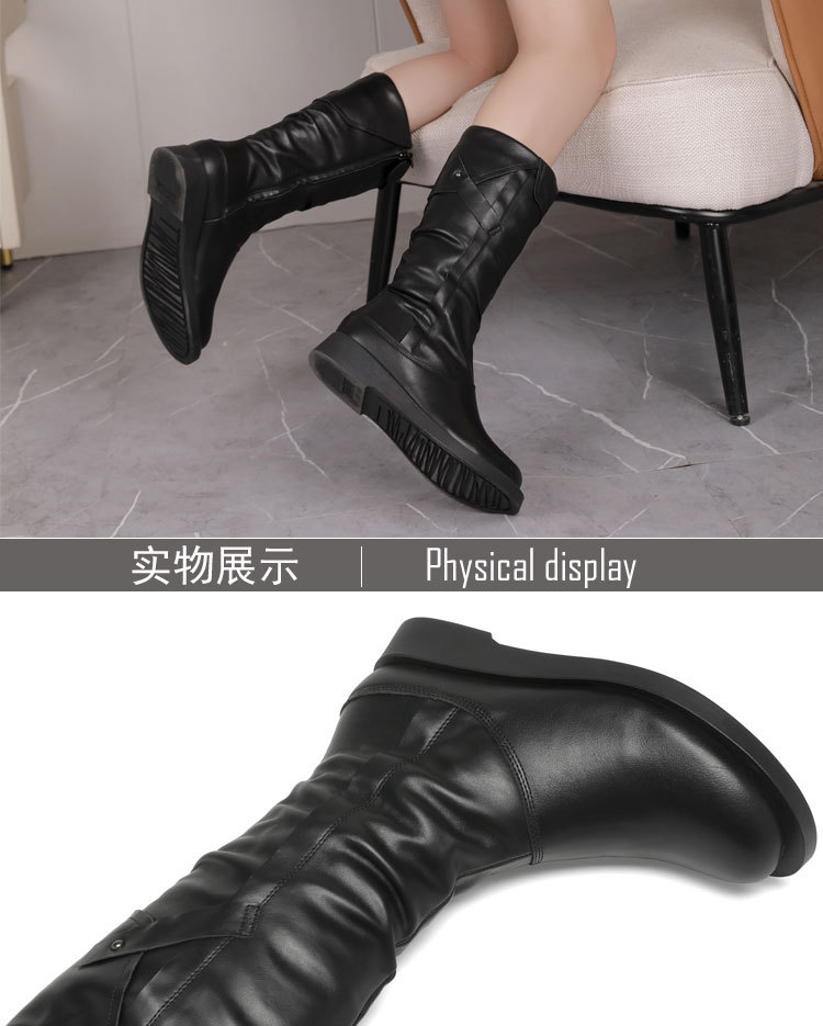 학교 뒤쪽 가을 겨울용 솜 안감 마틴 부츠 캐주얼 대형 여성 부츠 두꺼운 밑창 다용도 중간 길이 부츠 패션 사이드 지퍼 부츠