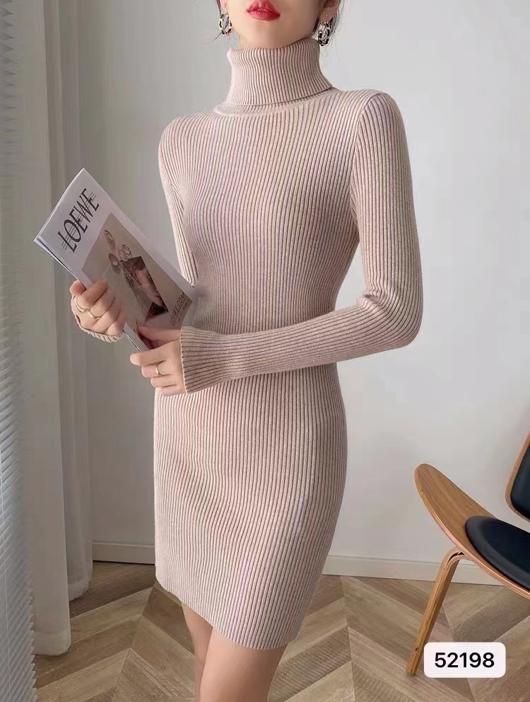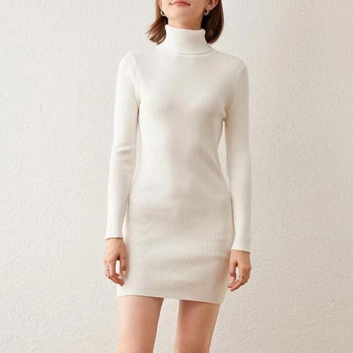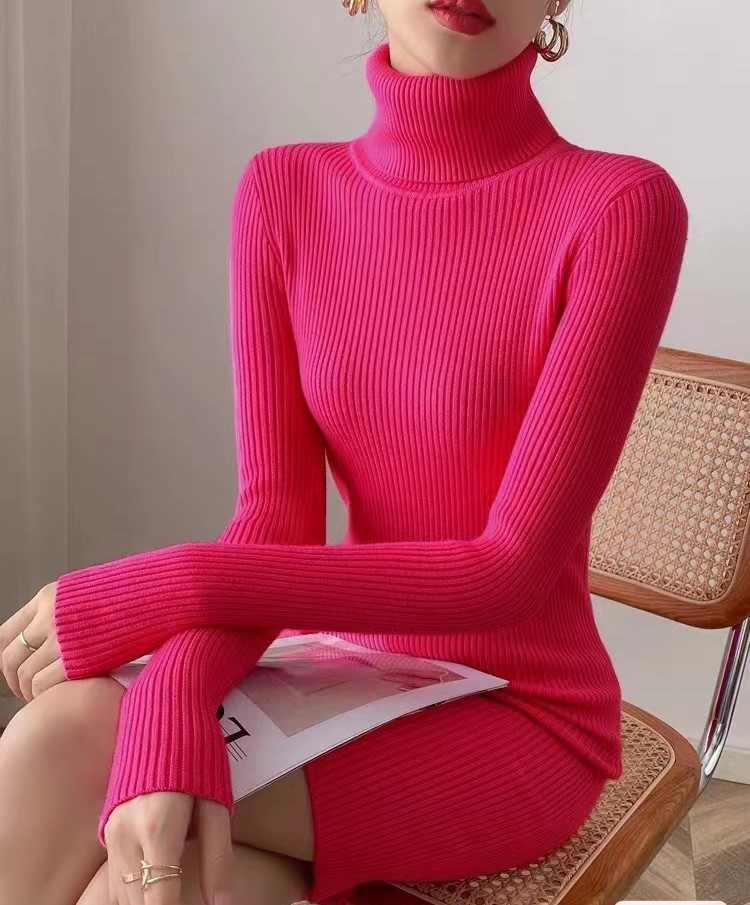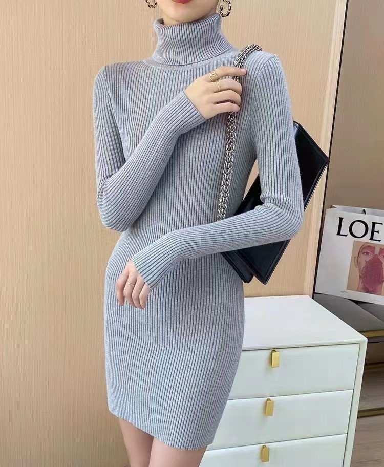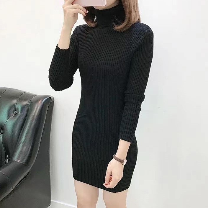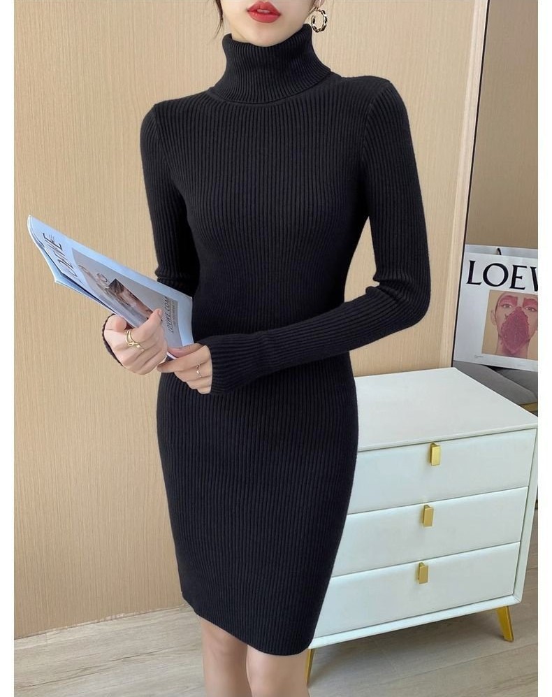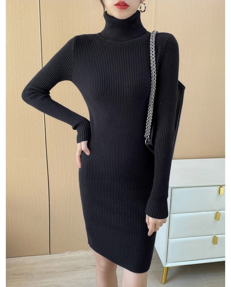 홍콩 스타일 하이 넥 타이트 니트 원피스 여성의 가을과 겨울베이스 중간 길이 스웨터 가벼운 성숙한 스타일 내부 힙 스커트스토어 가기