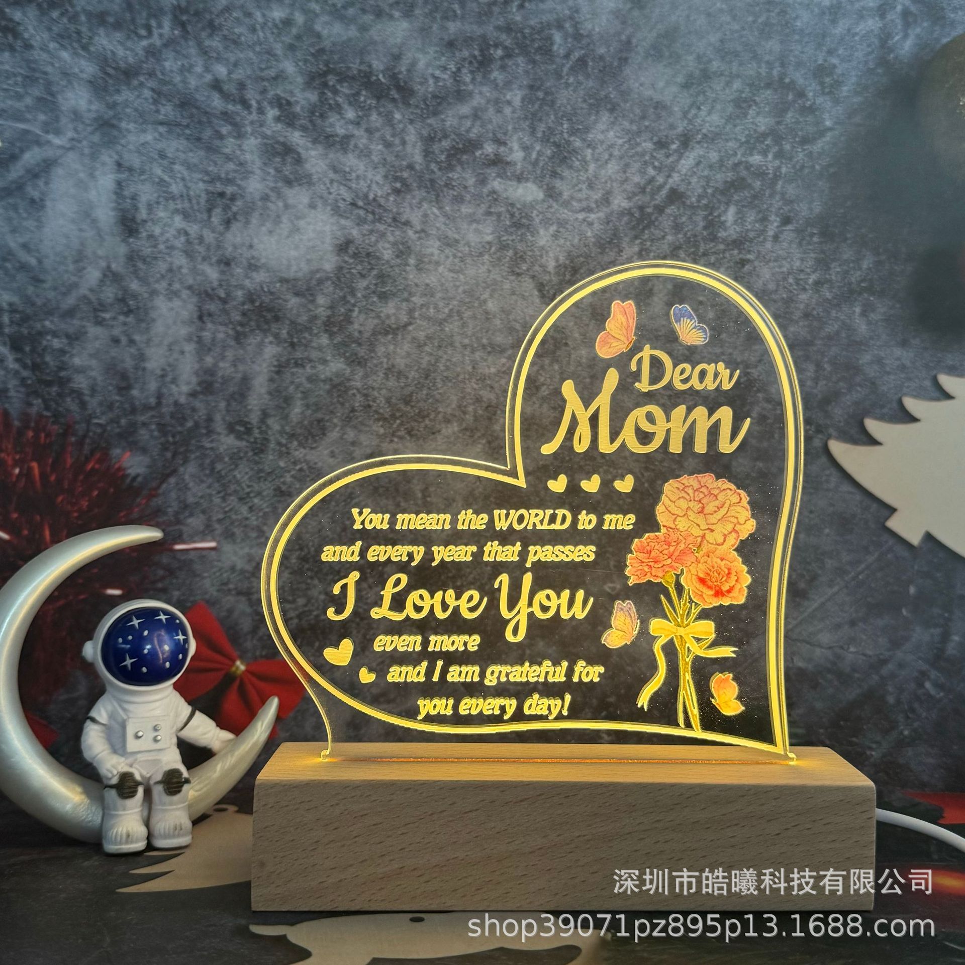 창의적인 프로젝션 3D 무드등 도매, 어머니를 위한 축복의 메시지, 조명 분위기 감지 램프, 가정 장식 테이블 램프