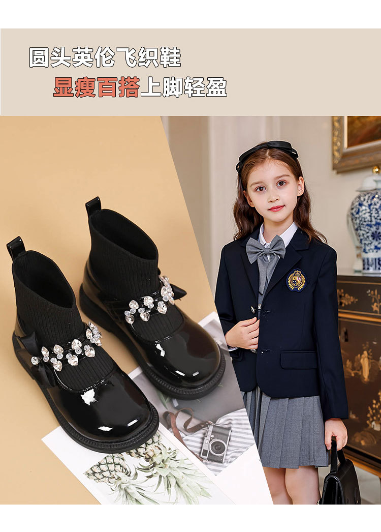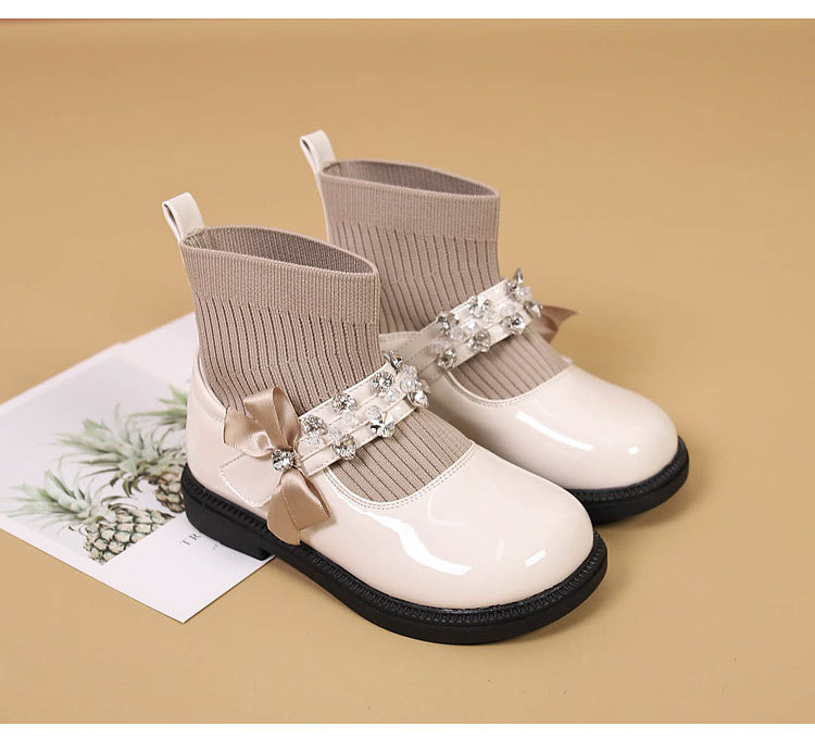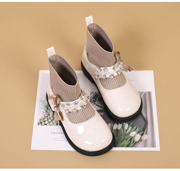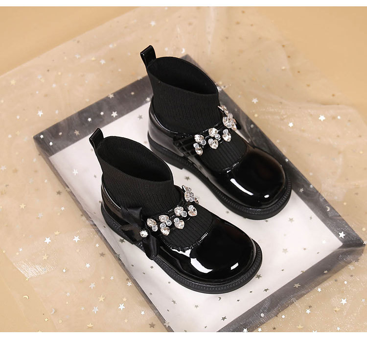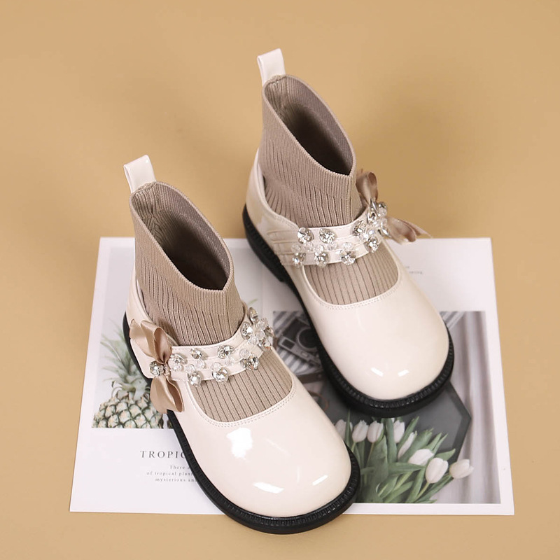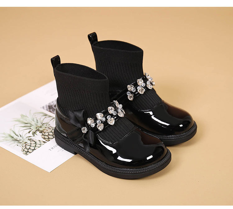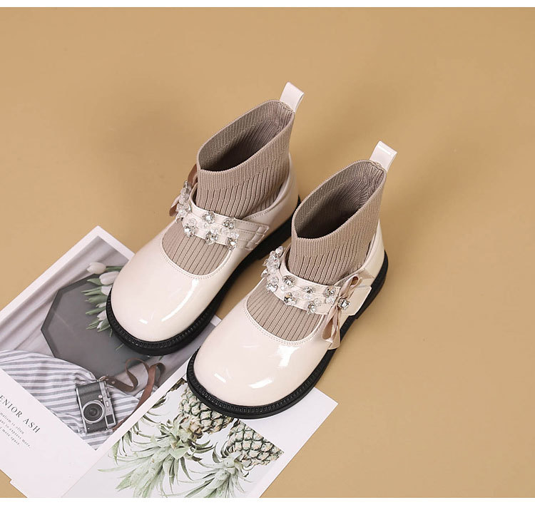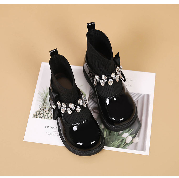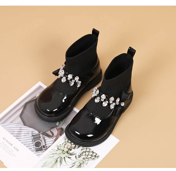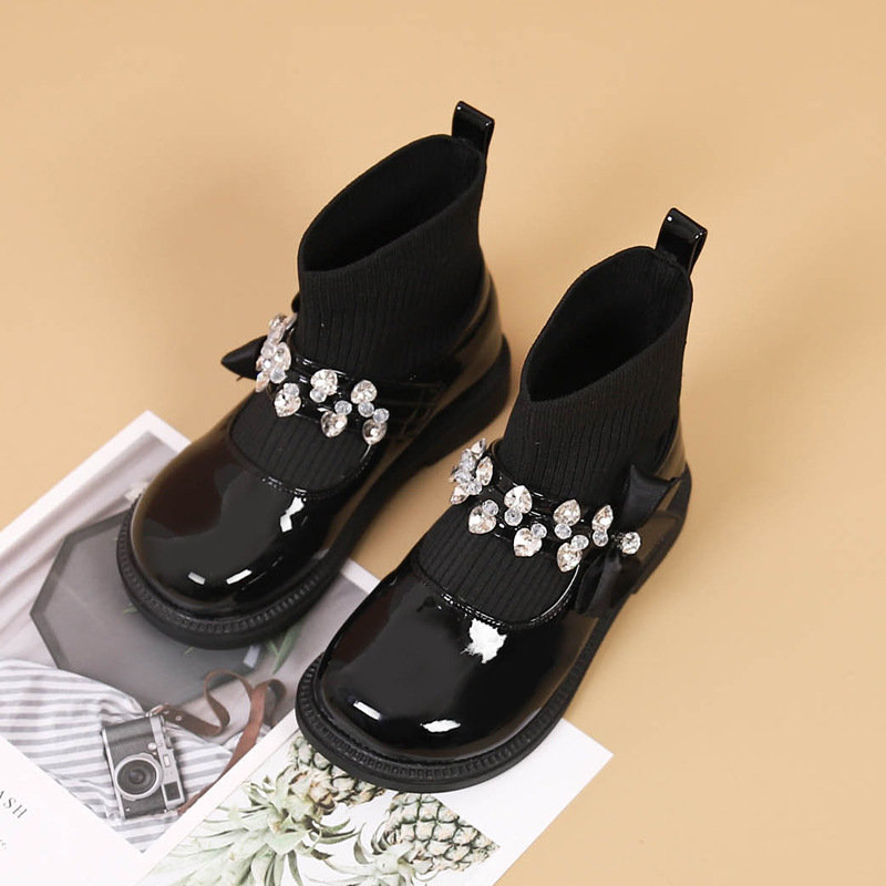 어린이 부츠 가을 새로운 소가죽 꽃 첼시 소녀 마틴 양말 짧은 부츠 어린 소녀 공주 가죽 신발