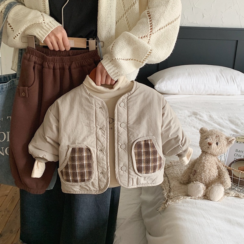 어린이 면 패딩 코트 겨울 짧은 두꺼운 양면 착용 남아 퀼트 재킷 여아 따뜻한 격자 무늬 탑 한국 스타일 유행스토어 가기