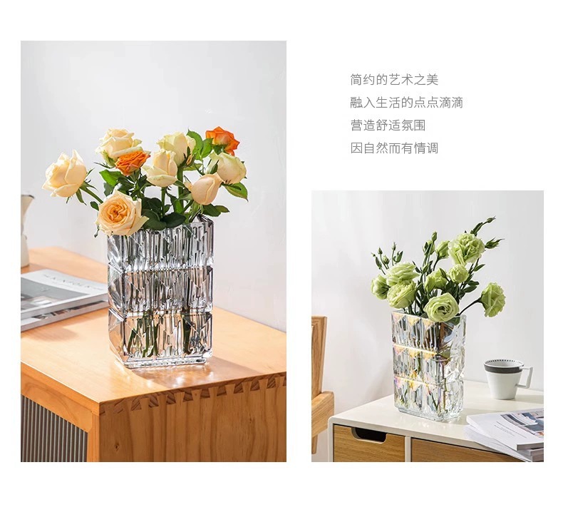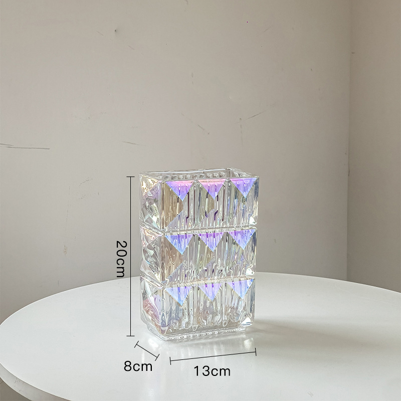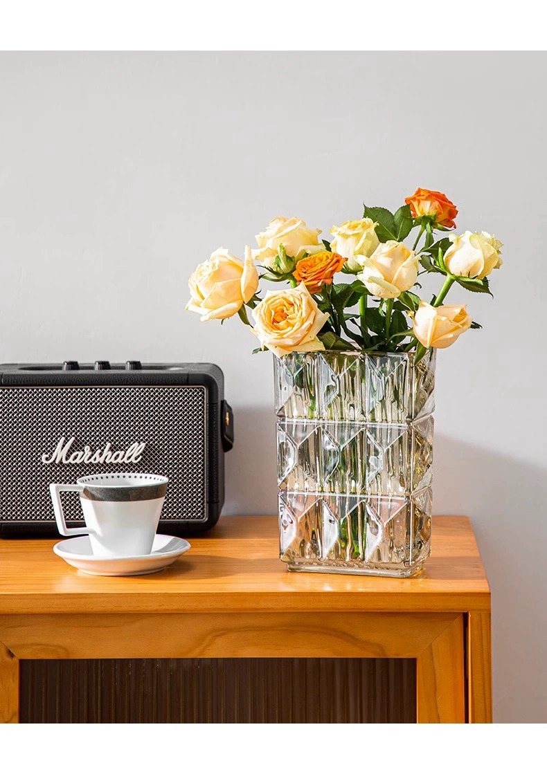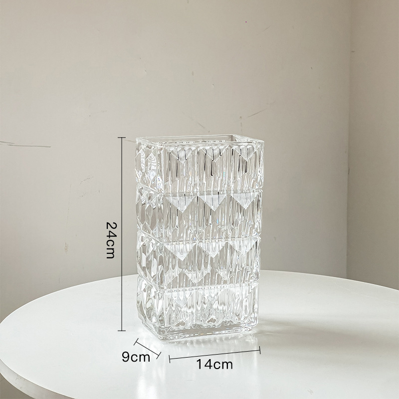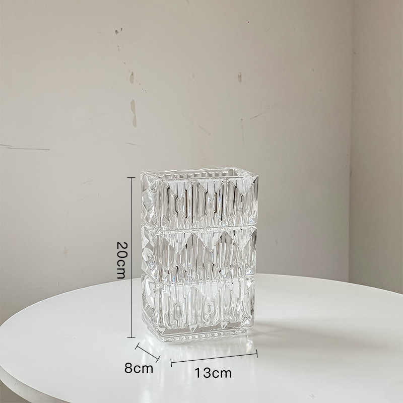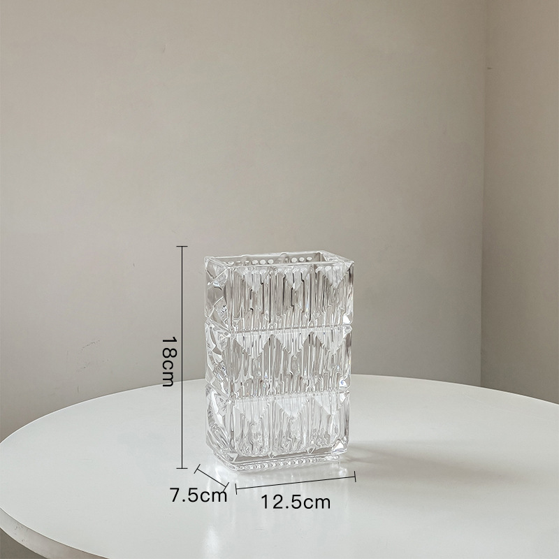 가벼운 럭셔리 사각 투명 유리 꽃병, 창의적인 수경화분, 인스 스타일 장식품, 모던하고 심플한 디자인스토어 가기