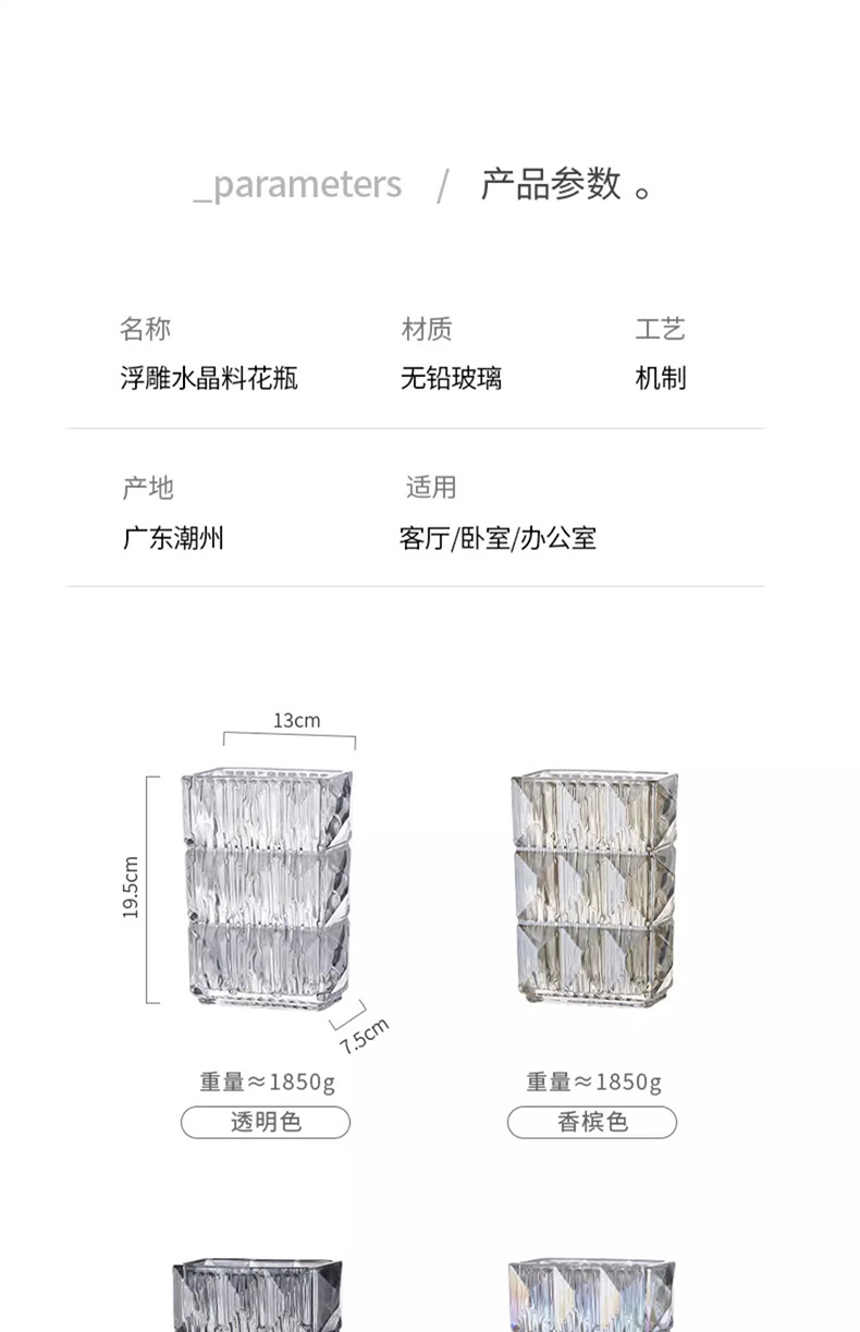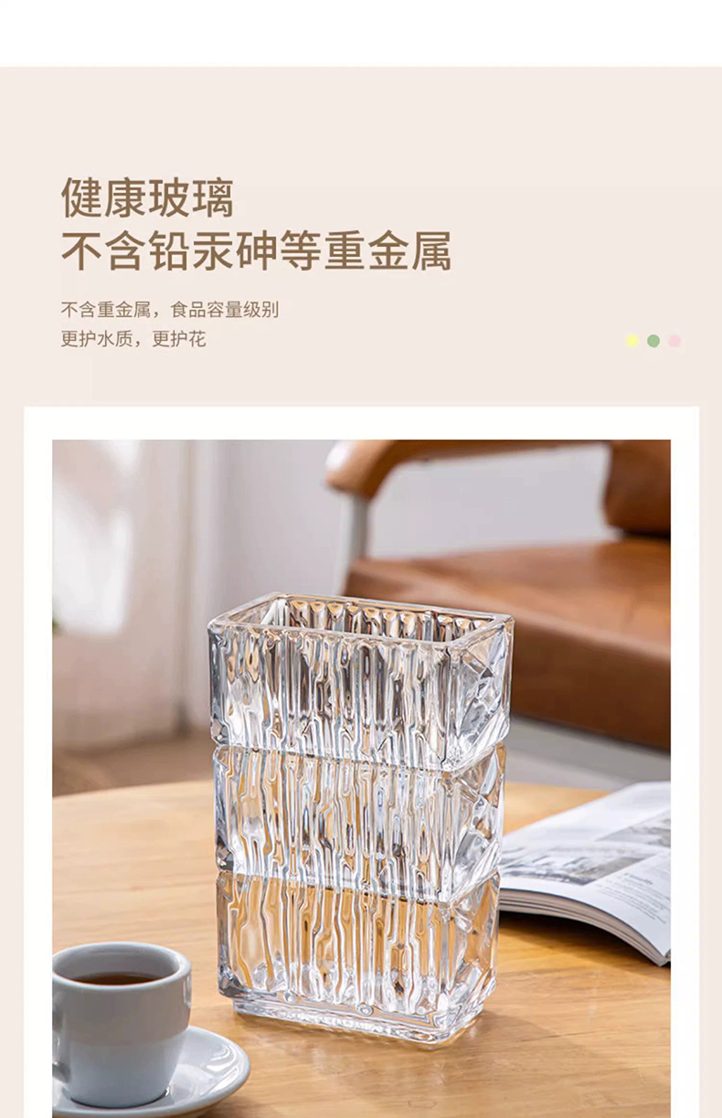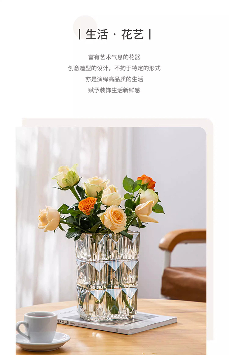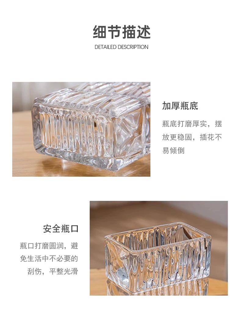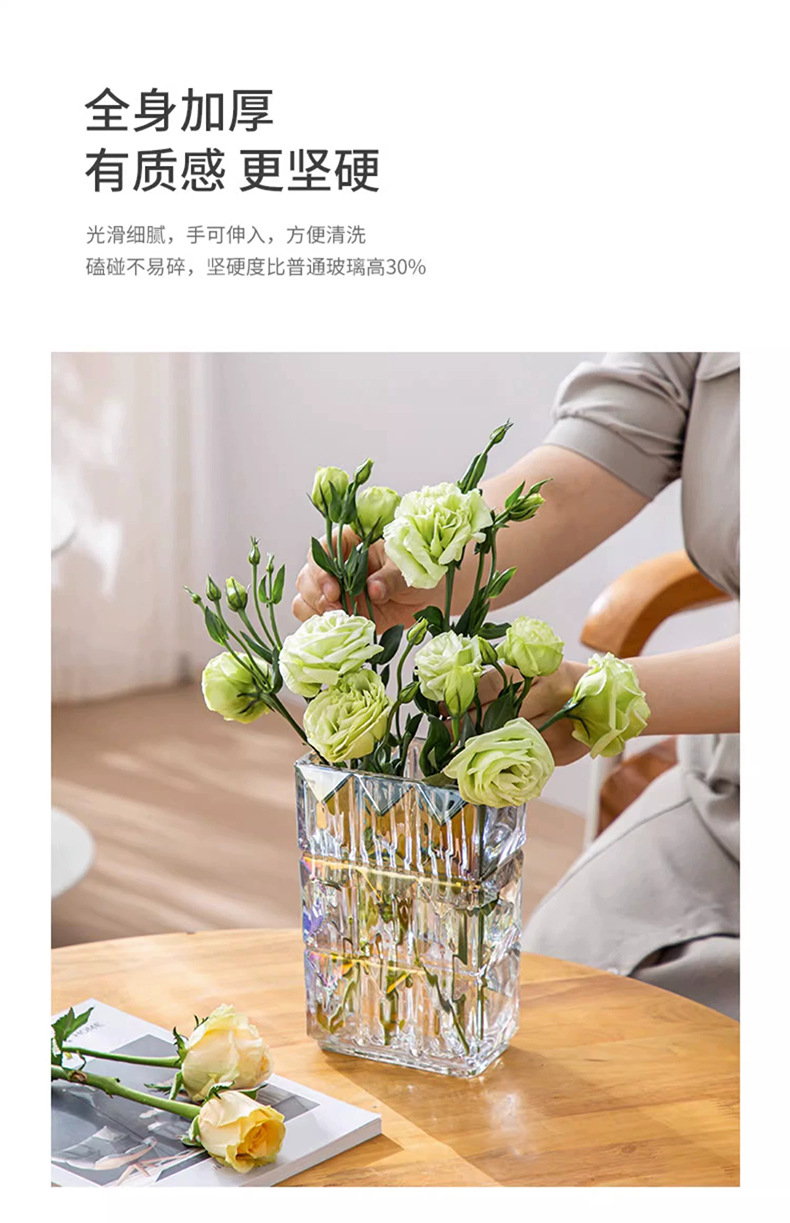 가벼운 럭셔리 사각 투명 유리 꽃병, 창의적인 수경화분, 인스 스타일 장식품, 모던하고 심플한 디자인스토어 가기