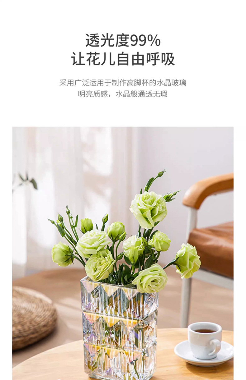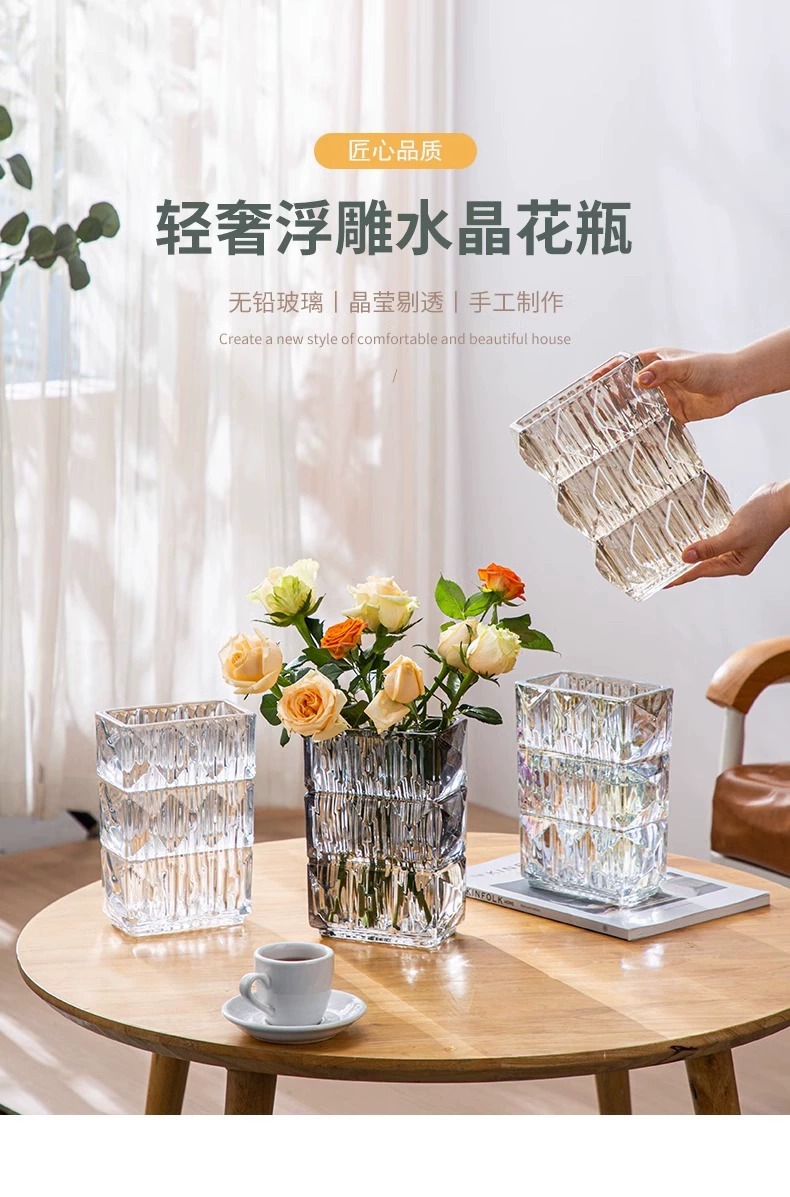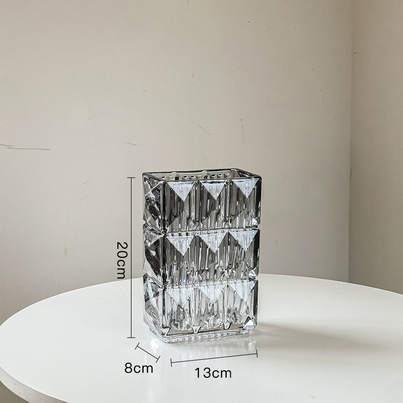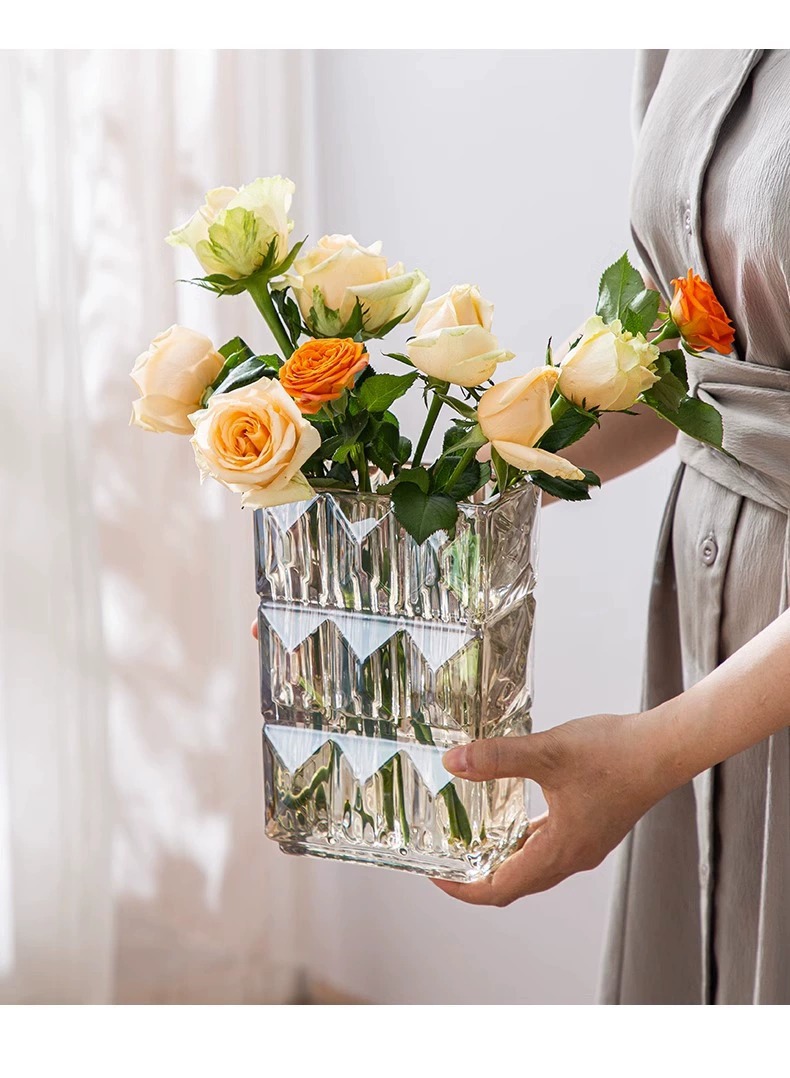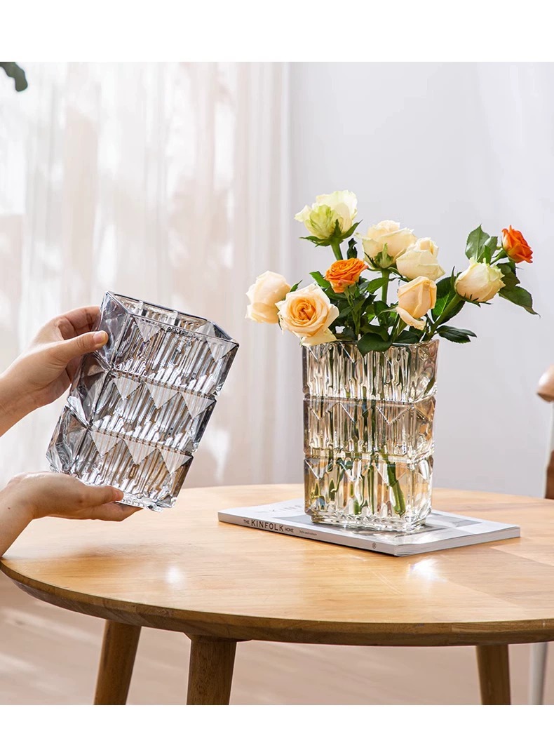 가벼운 럭셔리 사각 투명 유리 꽃병, 창의적인 수경화분, 인스 스타일 장식품, 모던하고 심플한 디자인