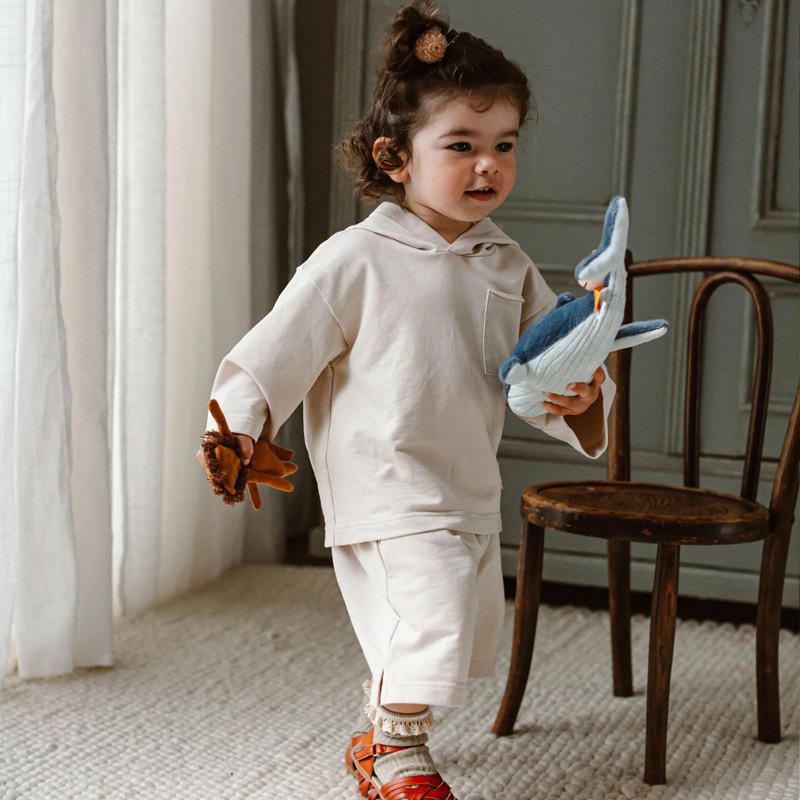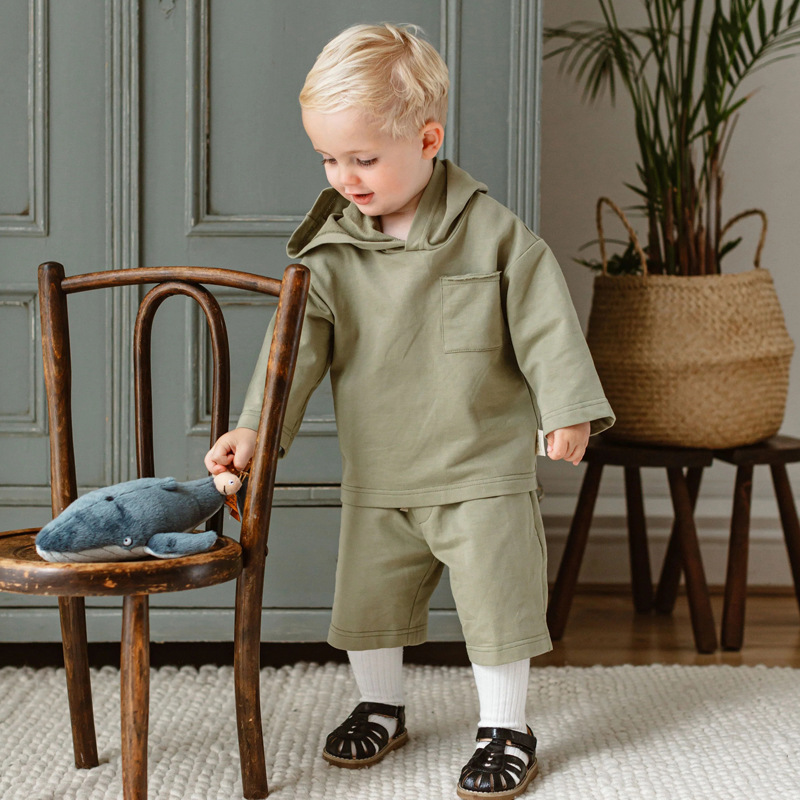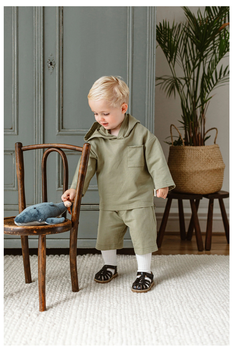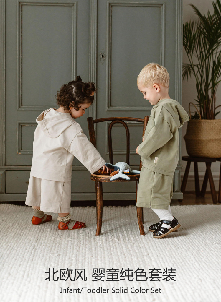 북유럽 스타일 어린이 스웨터 세트 단색 긴 소매 아동 의류 소년과 소녀 아기 캐주얼 후드 코트 새로운 유럽과 미국스토어 가기