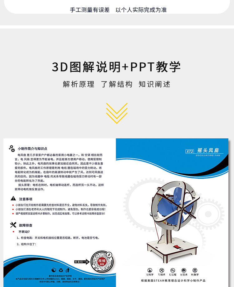 과학기술 소량 제작 diy 재료 흔들기 머리 선풍기 과학 실험 어린이 학생 손수 만들기 장난감스토어 가기