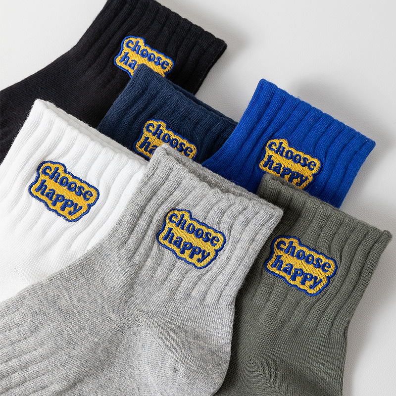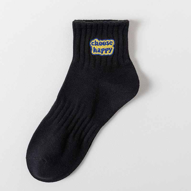 양말 남성용 짧은 튜브 양말 자수 남성 및 여성 커플 미드 튜브 양말 신장 면 땀 흡수 스타킹 십대를위한 최신 유행 스포츠 양말스토어 가기