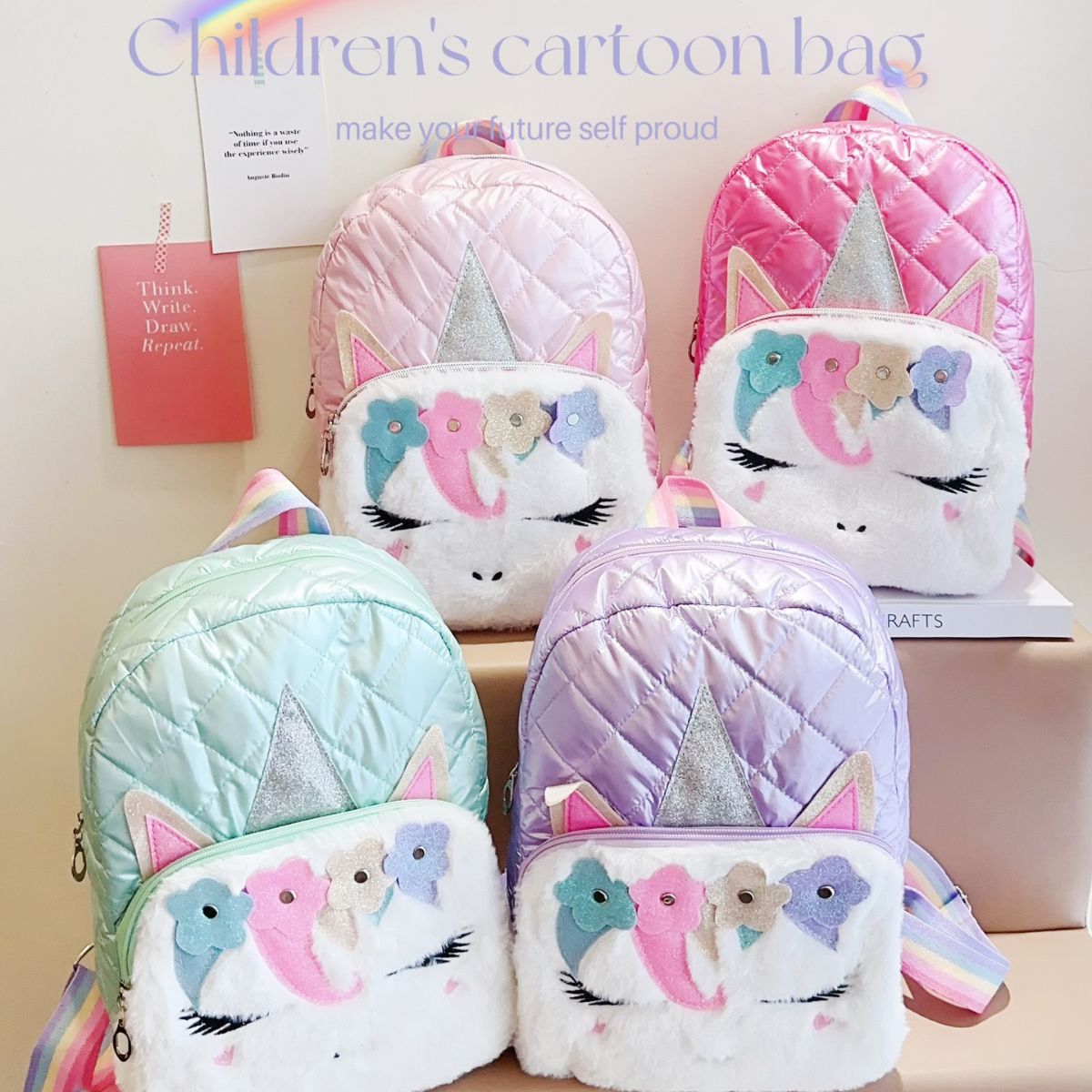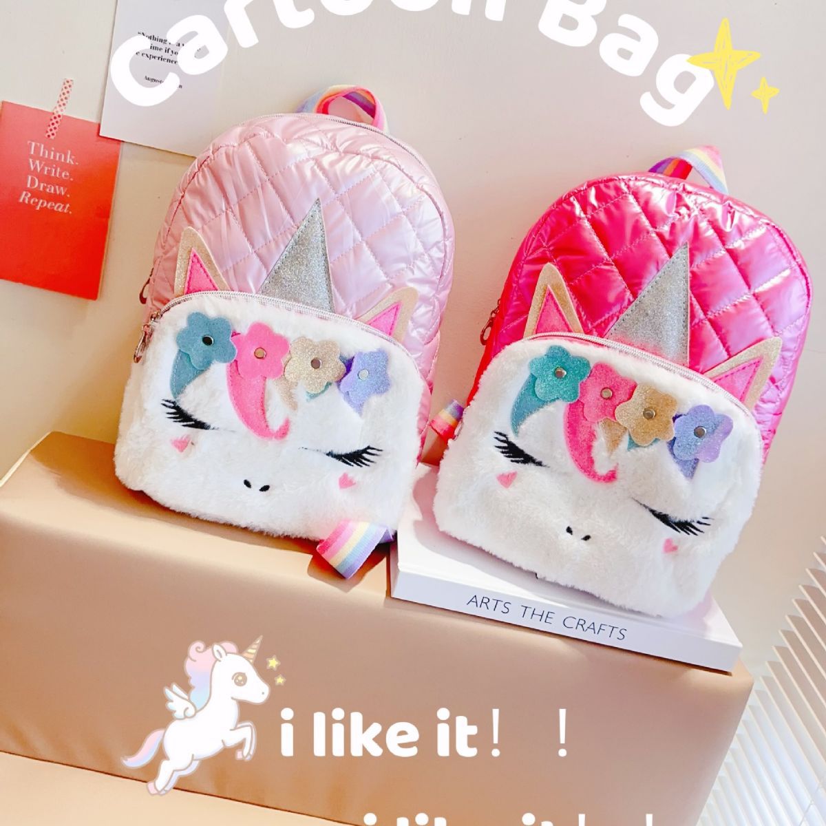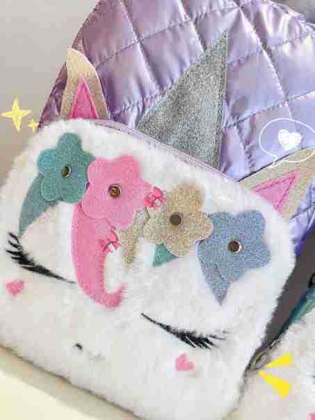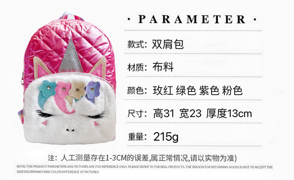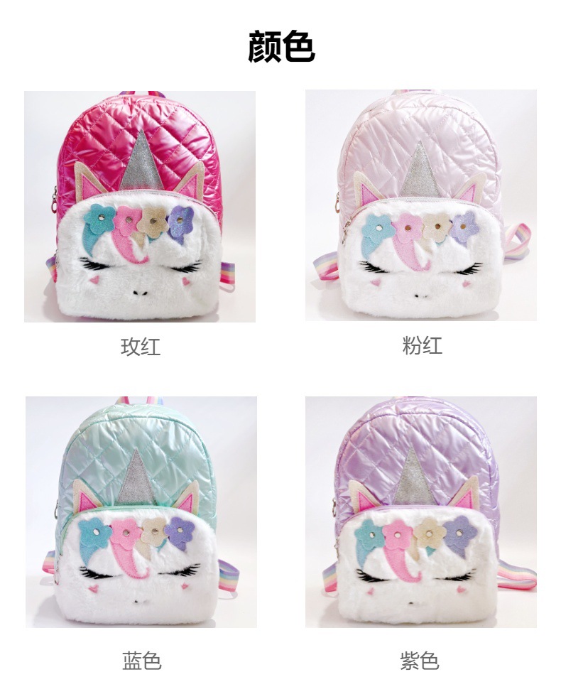 어린이 2023 새로운 봉제 유니콘 숄더 백 자수 소녀 배낭 학생 패션 만화 학교 가방 도매스토어 가기