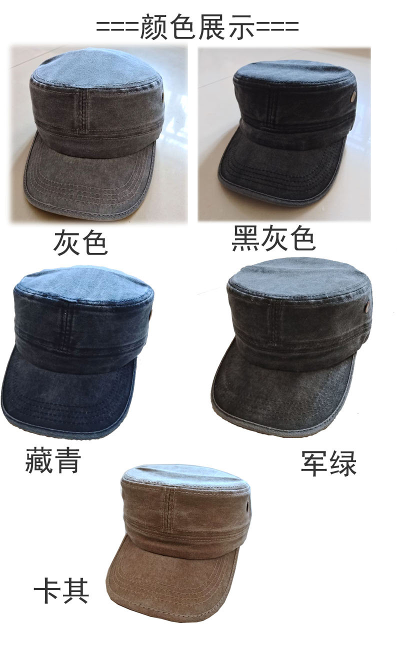 아마존 핫 세일 플랫 탑 밀리터리 모자 남성용 단색 세척 순면 코너 오리 혀 모자 야외 차양 야구 모자