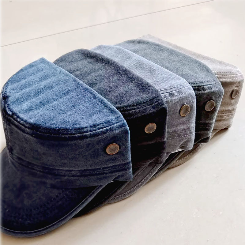 아마존 핫 세일 플랫 탑 밀리터리 모자 남성용 단색 세척 순면 코너 오리 혀 모자 야외 차양 야구 모자스토어 가기