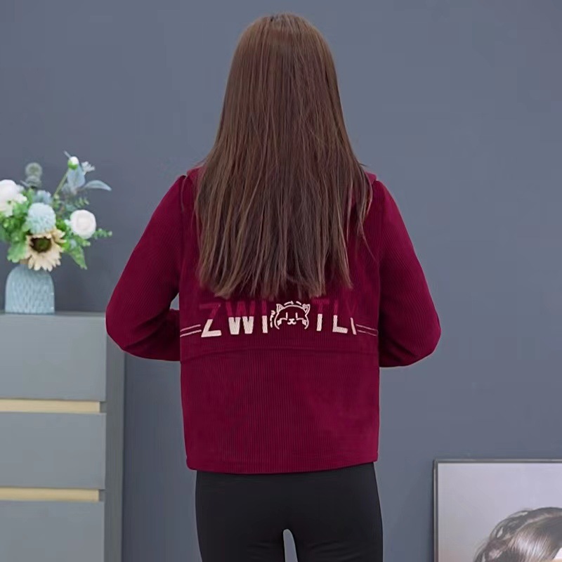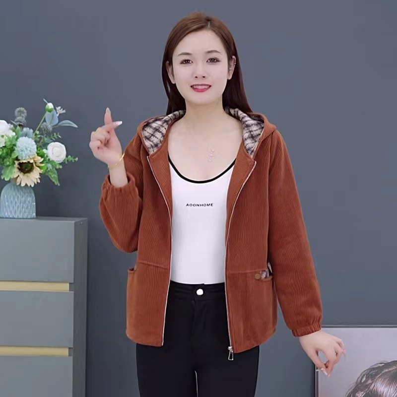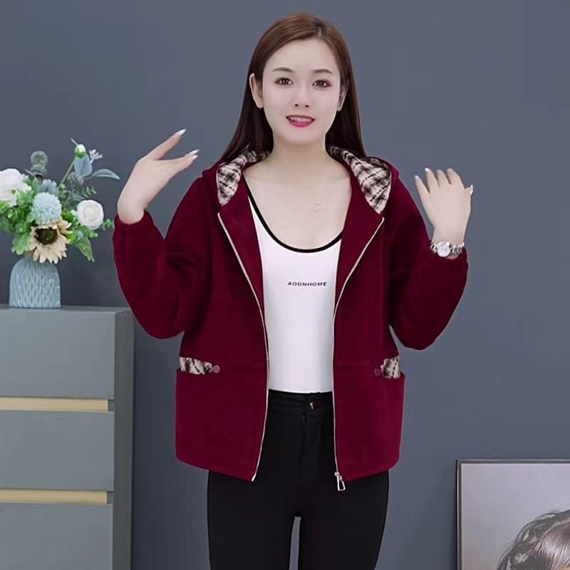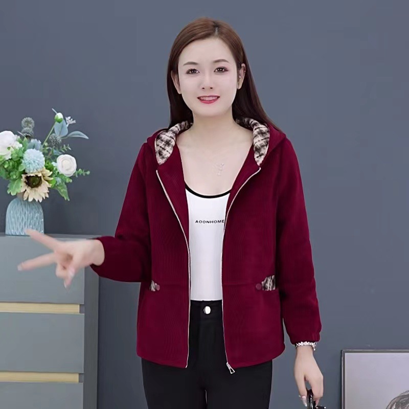 새로운 엄마의 캐주얼 재킷 유럽 코튼 벨벳 탑 2023 중년 및 노인 여성의 봄과 가을 패션 후드 짧은 재킷스토어 가기