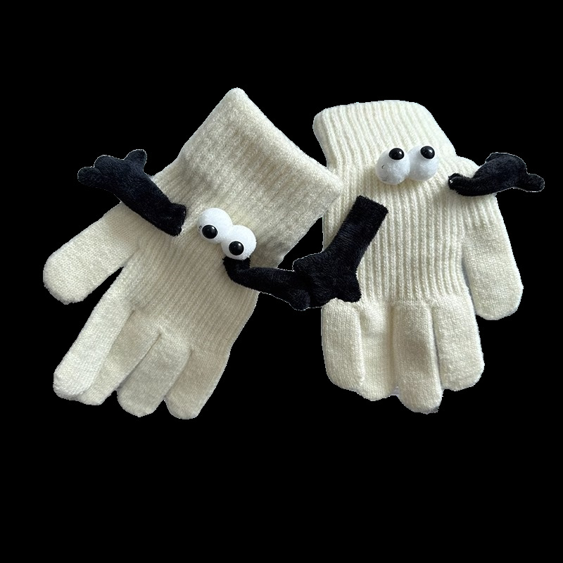 • 마그네틱 귀여운 아이 파이브 핑거 장갑 [화이트]]