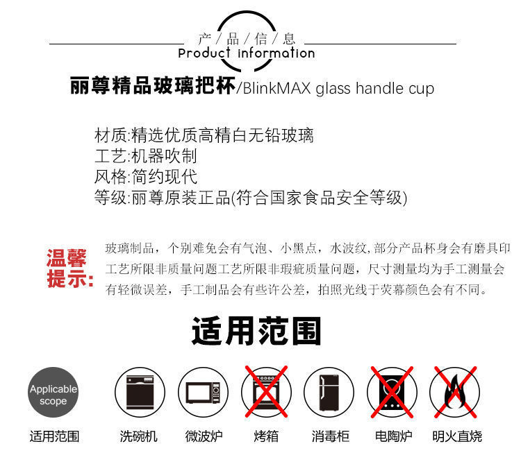 Lizun 손잡이 유리 컵 다기능 냉온수 범용 가정용 물 컵 찻잔 음료 우유 컵 커피 컵 투명스토어 가기