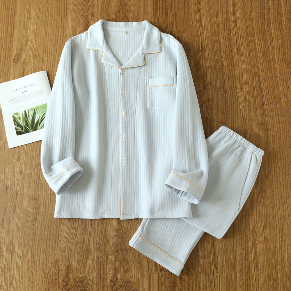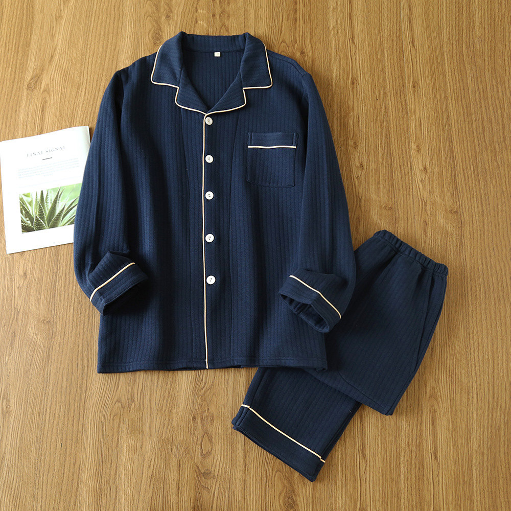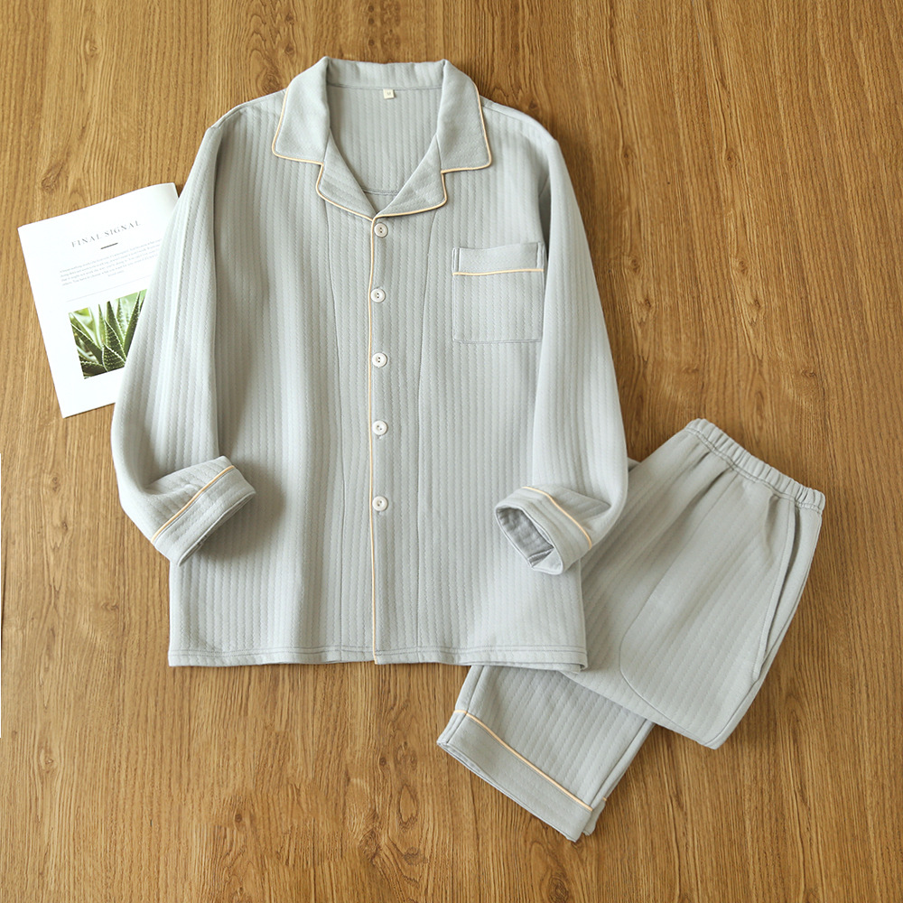 새로운 라펠 캐주얼 가을/겨울 잠옷 남자의 긴팔 순면 단색 남자의 에어 레이어 3 층 따뜻한 가정 옷 세트스토어 가기