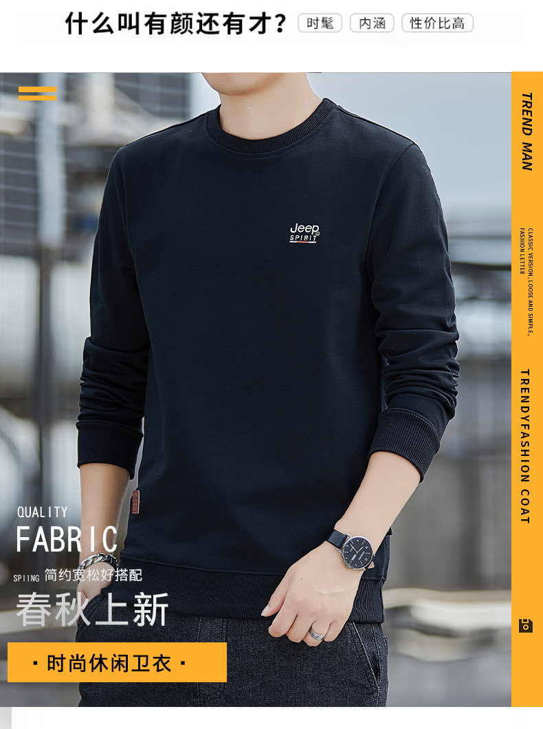 메인 푸시 JEEP SPIRIT 가을 크루넥 긴 소매 티셔츠 남성 스포츠 느슨한 운동복 남성 패션 브랜드 탑 HL7151스토어 가기