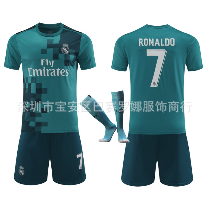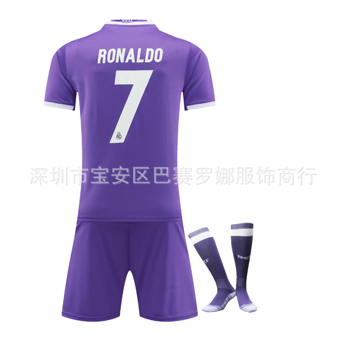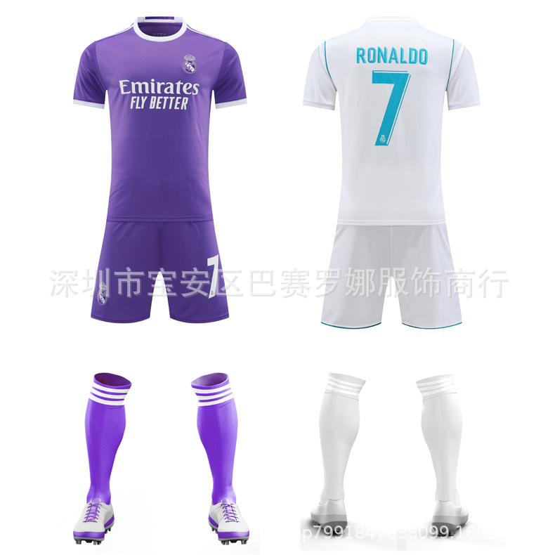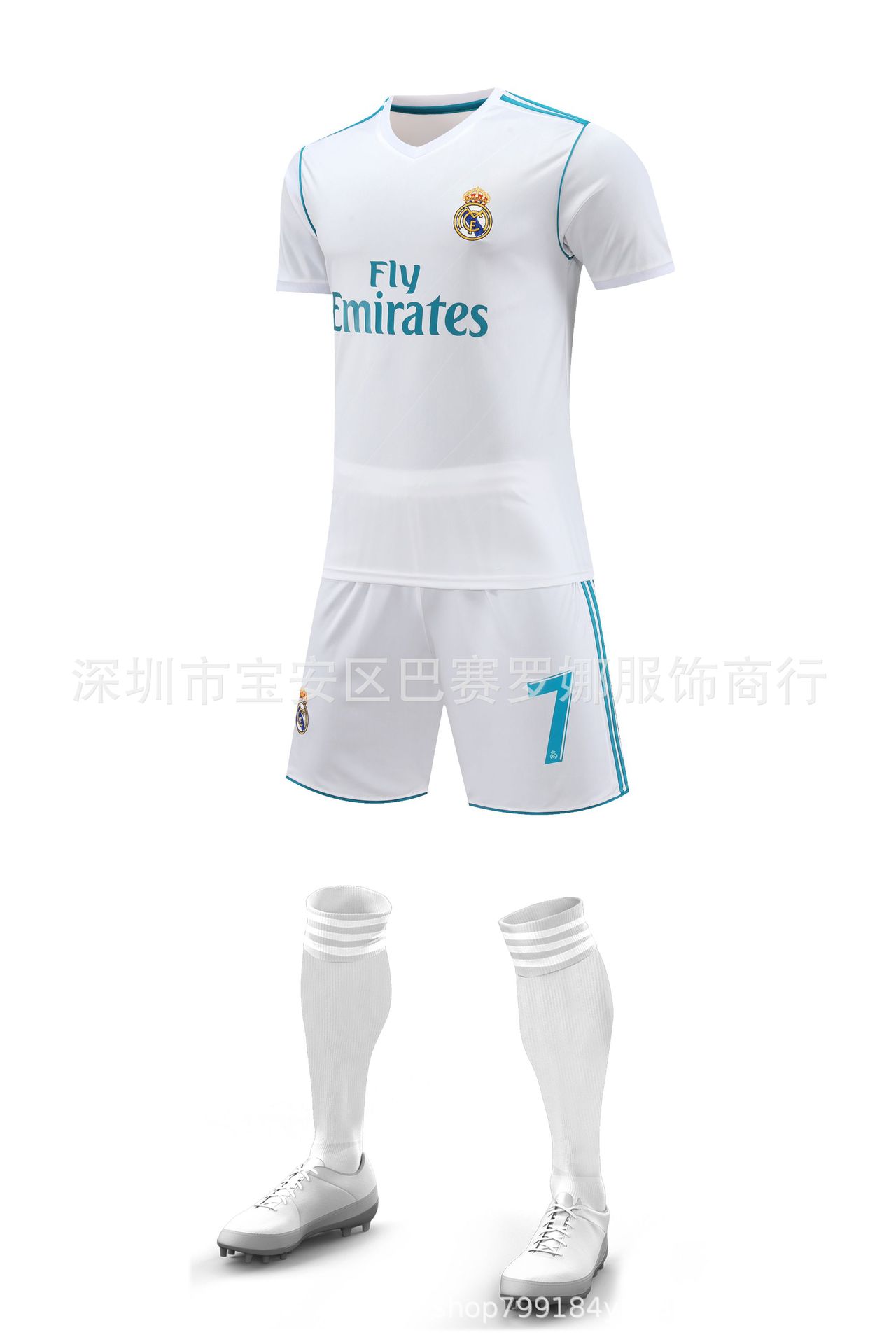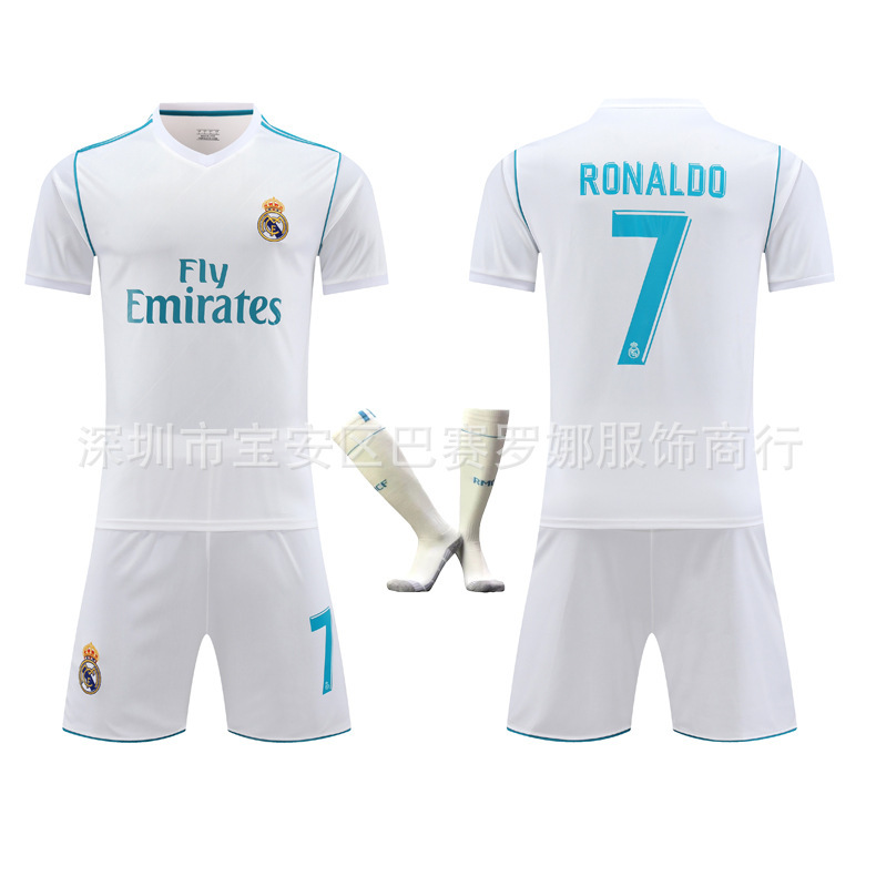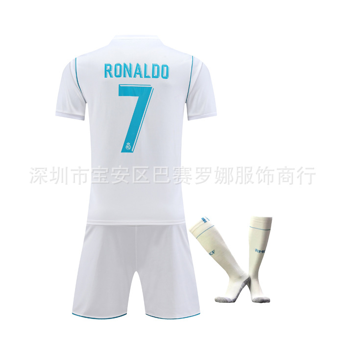 17-18 레알 마드리드 기념 저지 No.7 호나우두 성인 아동복 홈 앤 어웨이 레트로 축구 세트 양말
