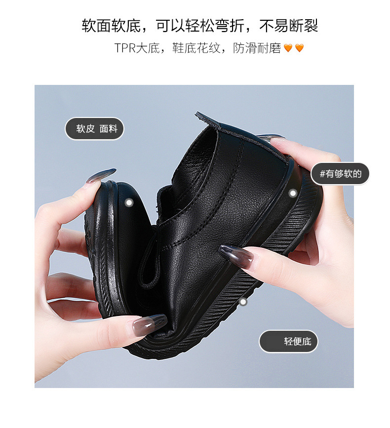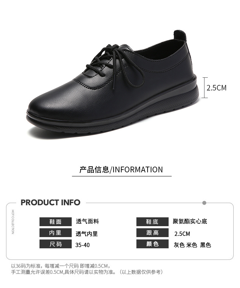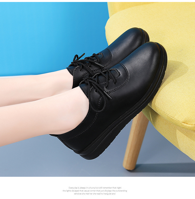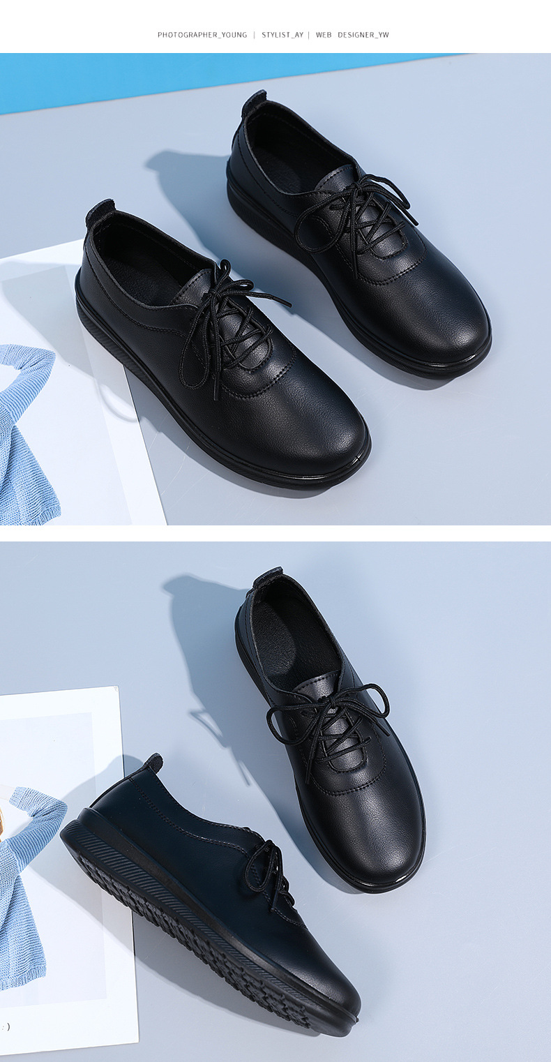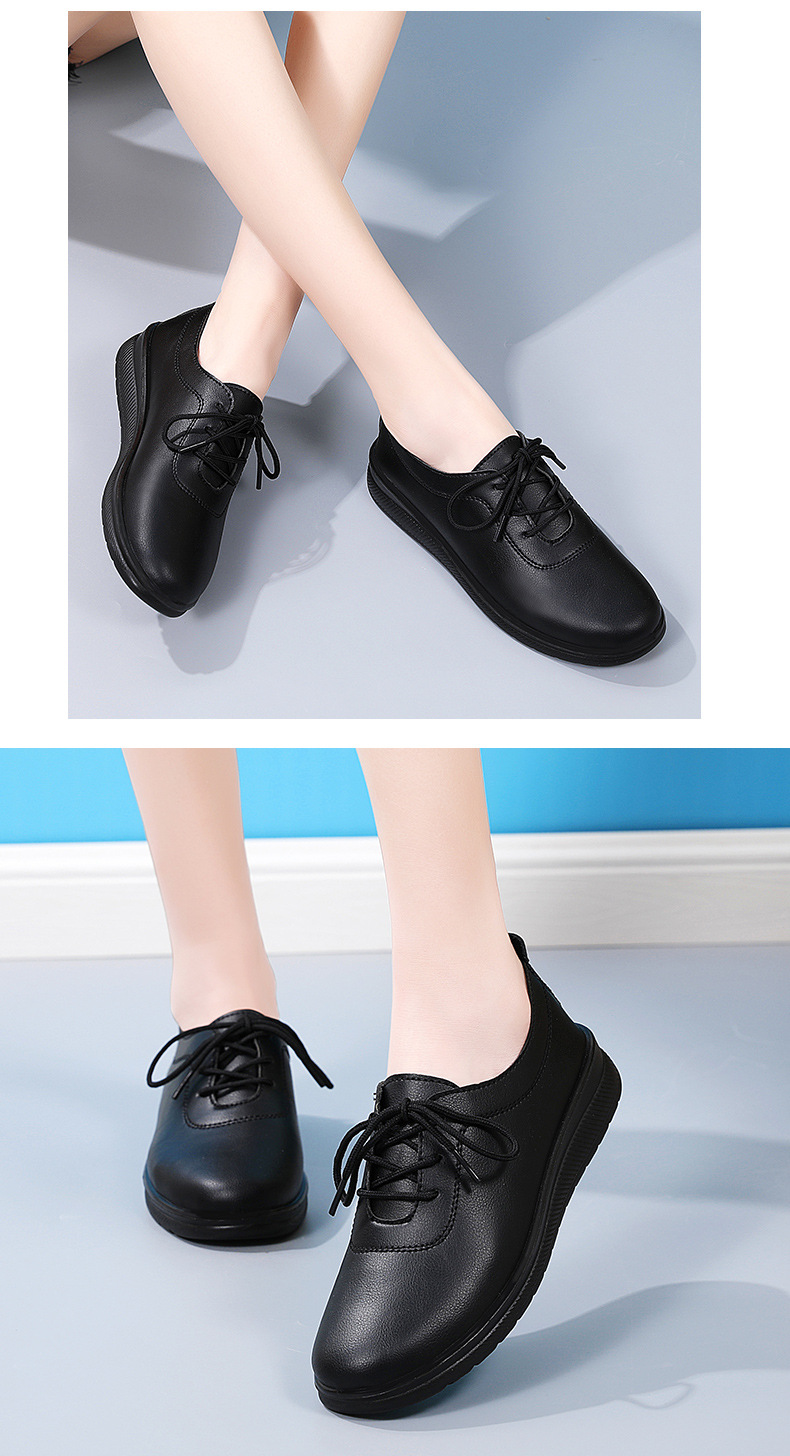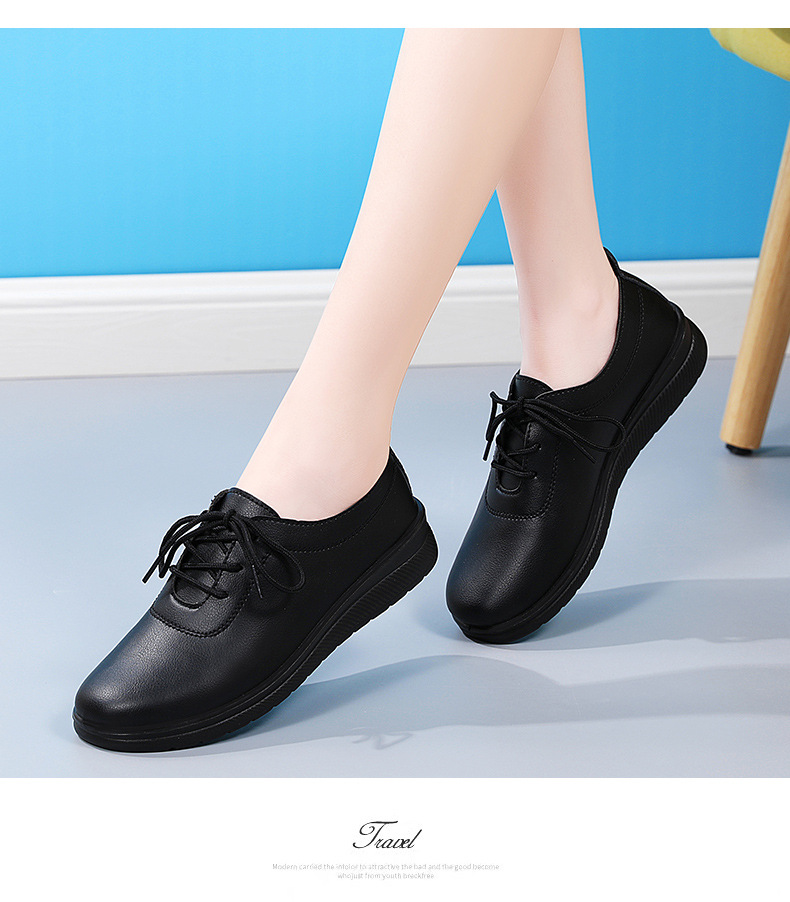 블랙 가죽 신발 여성용 장기간 서서 피곤하지 않은 발 편안한 미끄럼 방지 호텔 주방 작업 신발 부드러운 밑창 통근 신발
