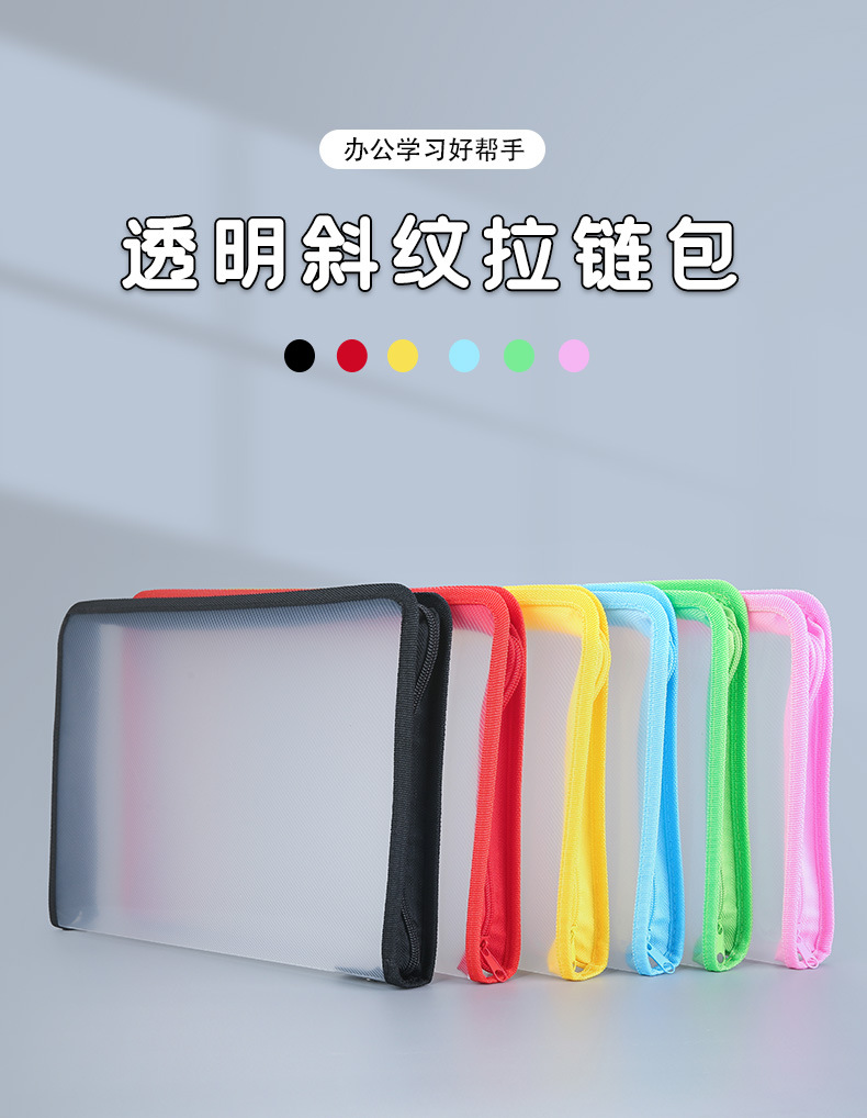 아마존 투명 능직 파일 가방 PP 지퍼 백 A4 데이터 수집 및 보관 가방 학생 시험지 문구 가방