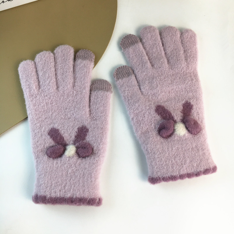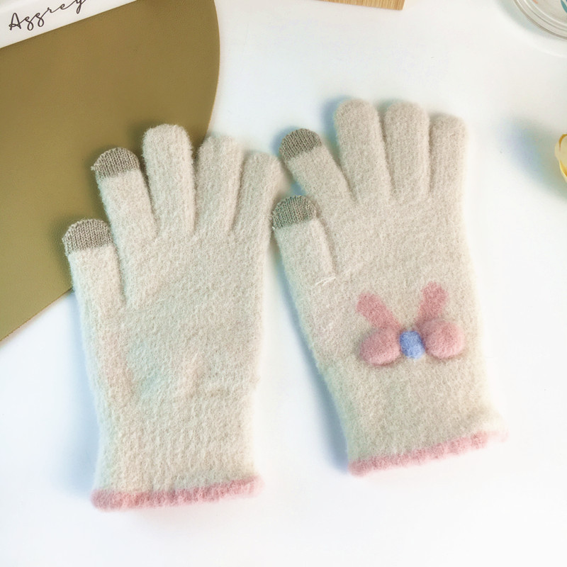 터치 스크린 보우 울 니트 손가락 장갑 가을과 겨울 한국 스타일 달콤한 따뜻한 승마 새로운 다섯 손가락 세트스토어 가기