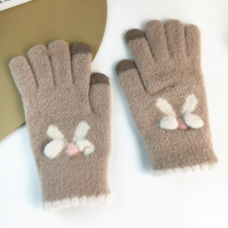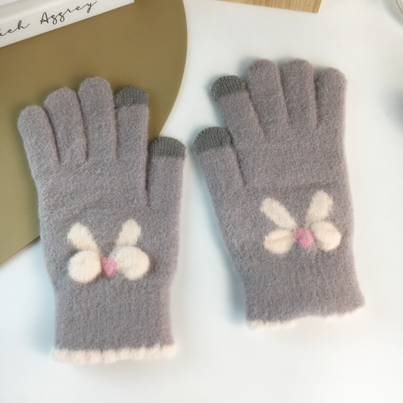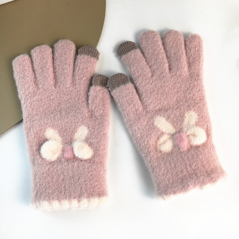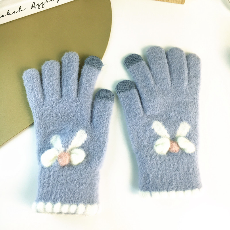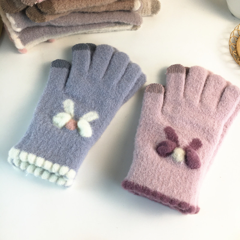 터치 스크린 보우 울 니트 손가락 장갑 가을과 겨울 한국 스타일 달콤한 따뜻한 승마 새로운 다섯 손가락 세트