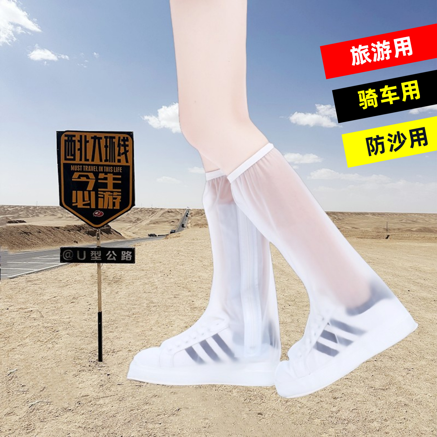 방수 신발 커버 선택 남성용 미끄럼 방지 하이 튜브 외부 착용 방지 샌드 커버 신발 두꺼운 오토바이 타기 투명 발 커버 비 신발스토어 가기