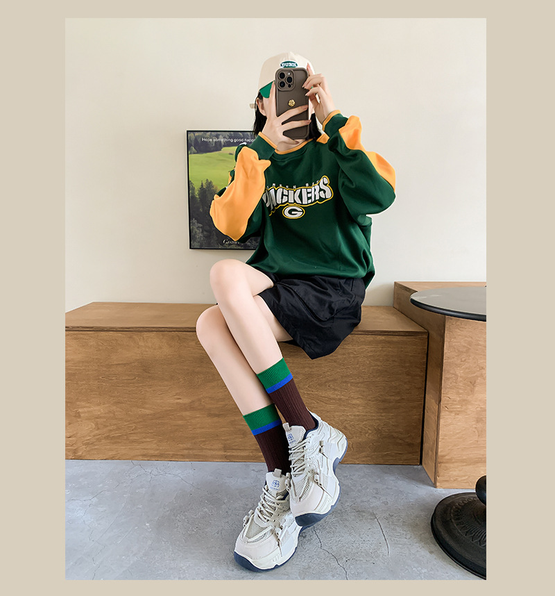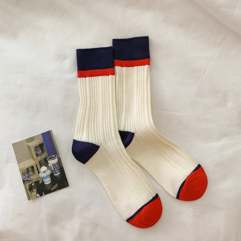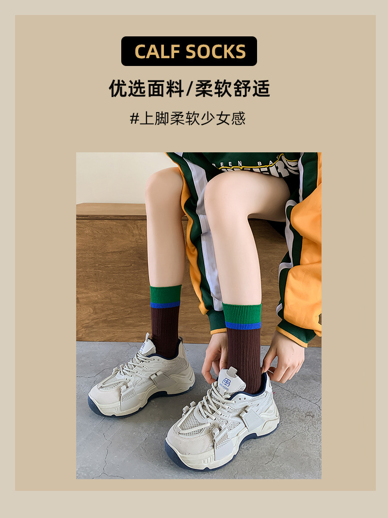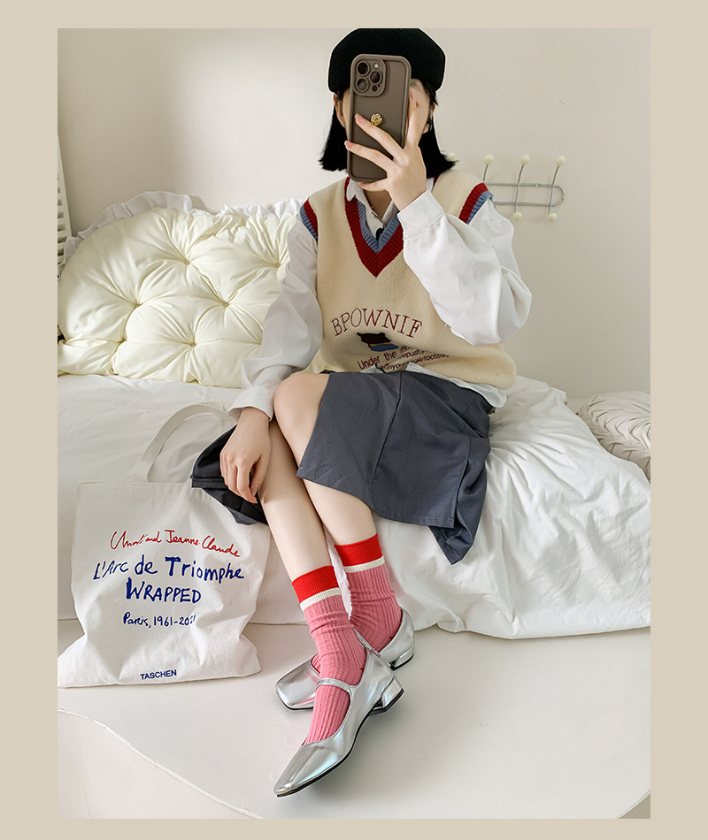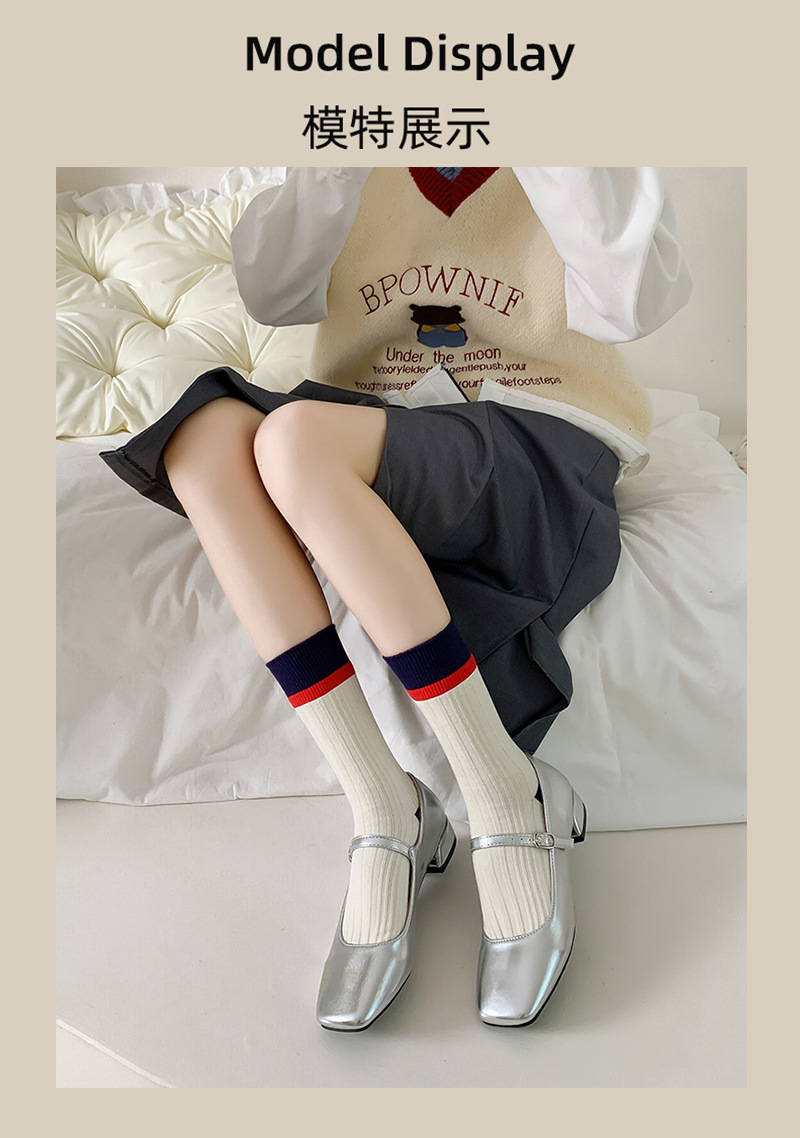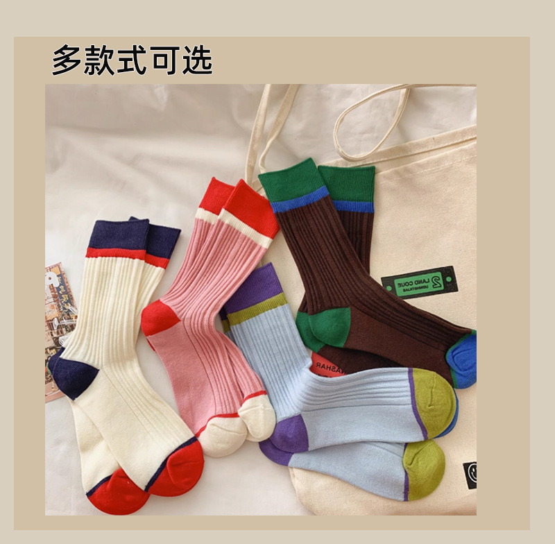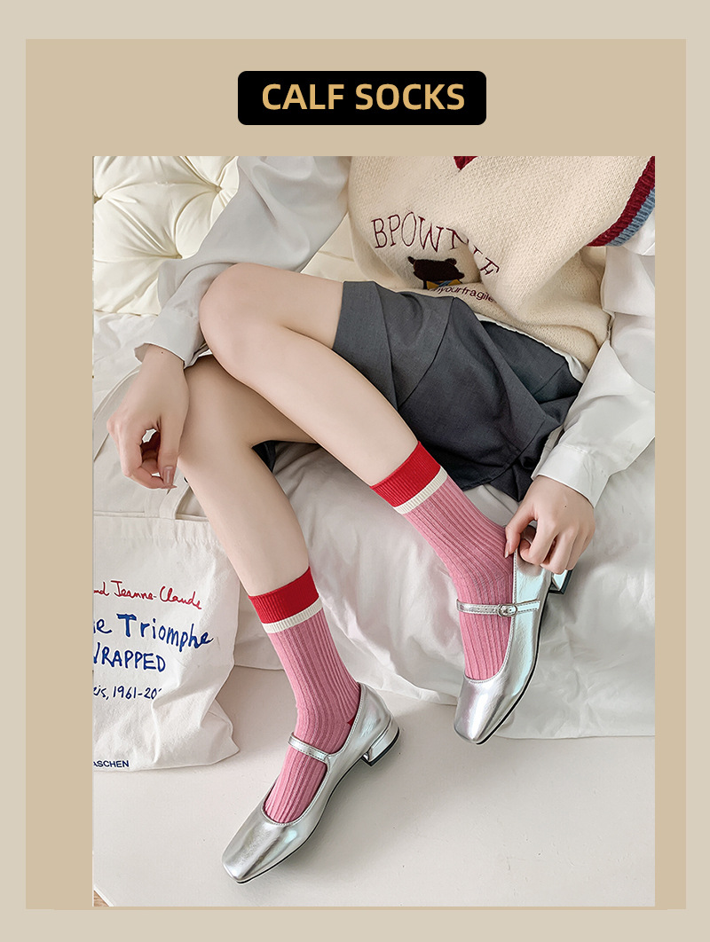 일본식 줄무늬 양말 여성용 핑크색 중간 길이 트렌디 양말 여름 얇은 스타일 다크 패턴 도파민 스타일 패셔너블하고 다용도로 착용 가능한 양말스토어 가기