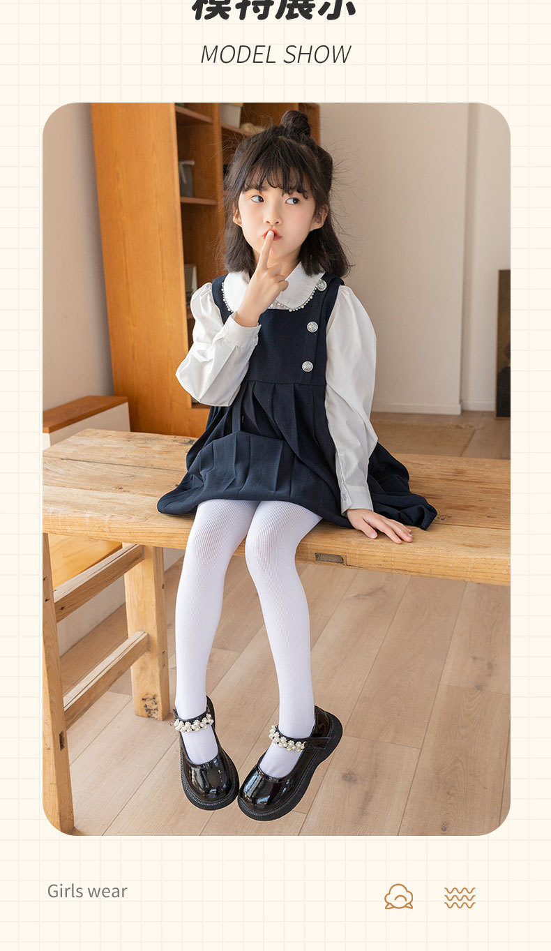 어린이 봄과 가을 레깅스 소녀면 안티 필링 수직 스트라이프 솔 미끄럼 방지 흰색 다목적 한국 댄스 양말스토어 가기