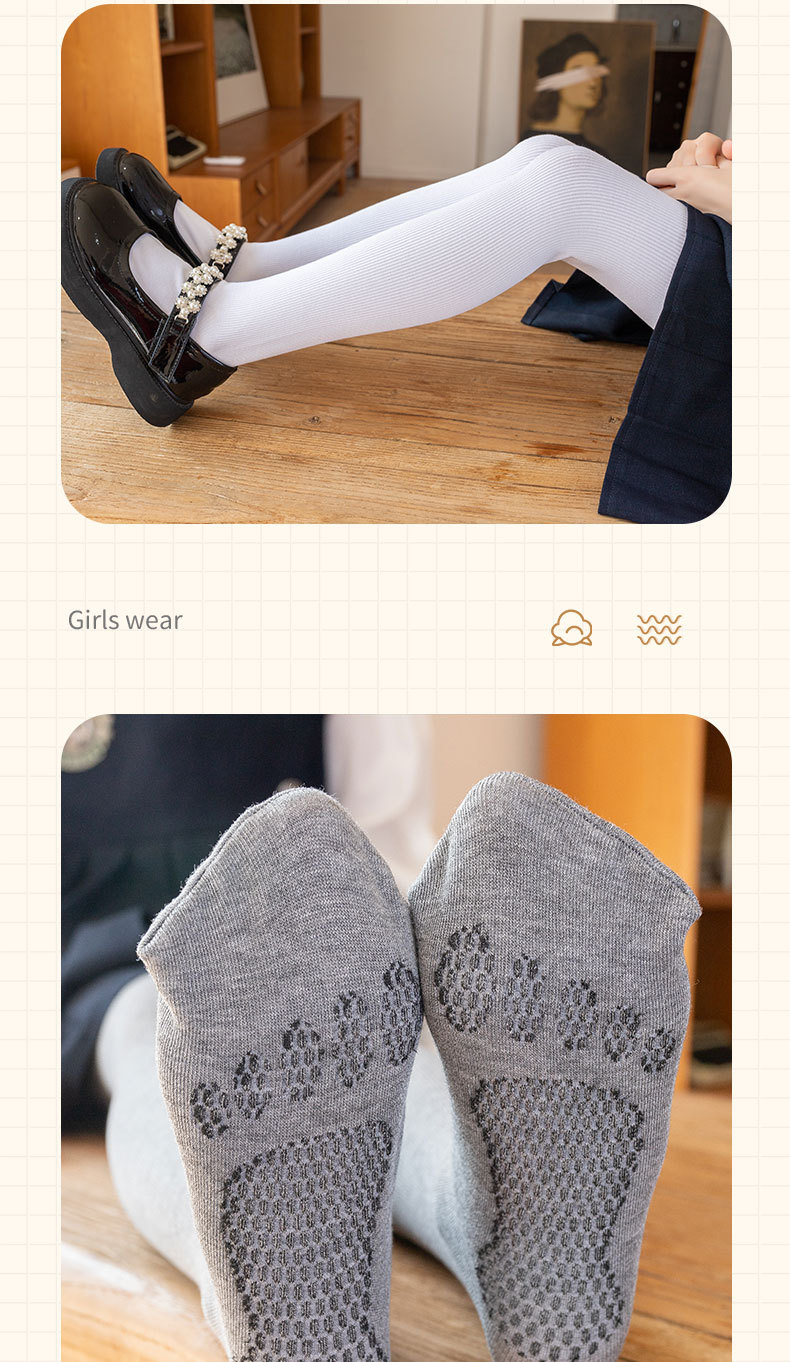 어린이 봄과 가을 레깅스 소녀면 안티 필링 수직 스트라이프 솔 미끄럼 방지 흰색 다목적 한국 댄스 양말