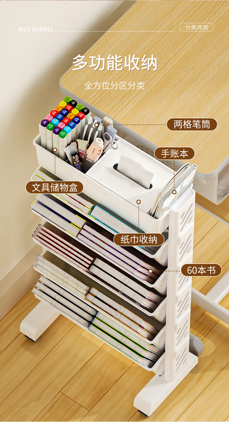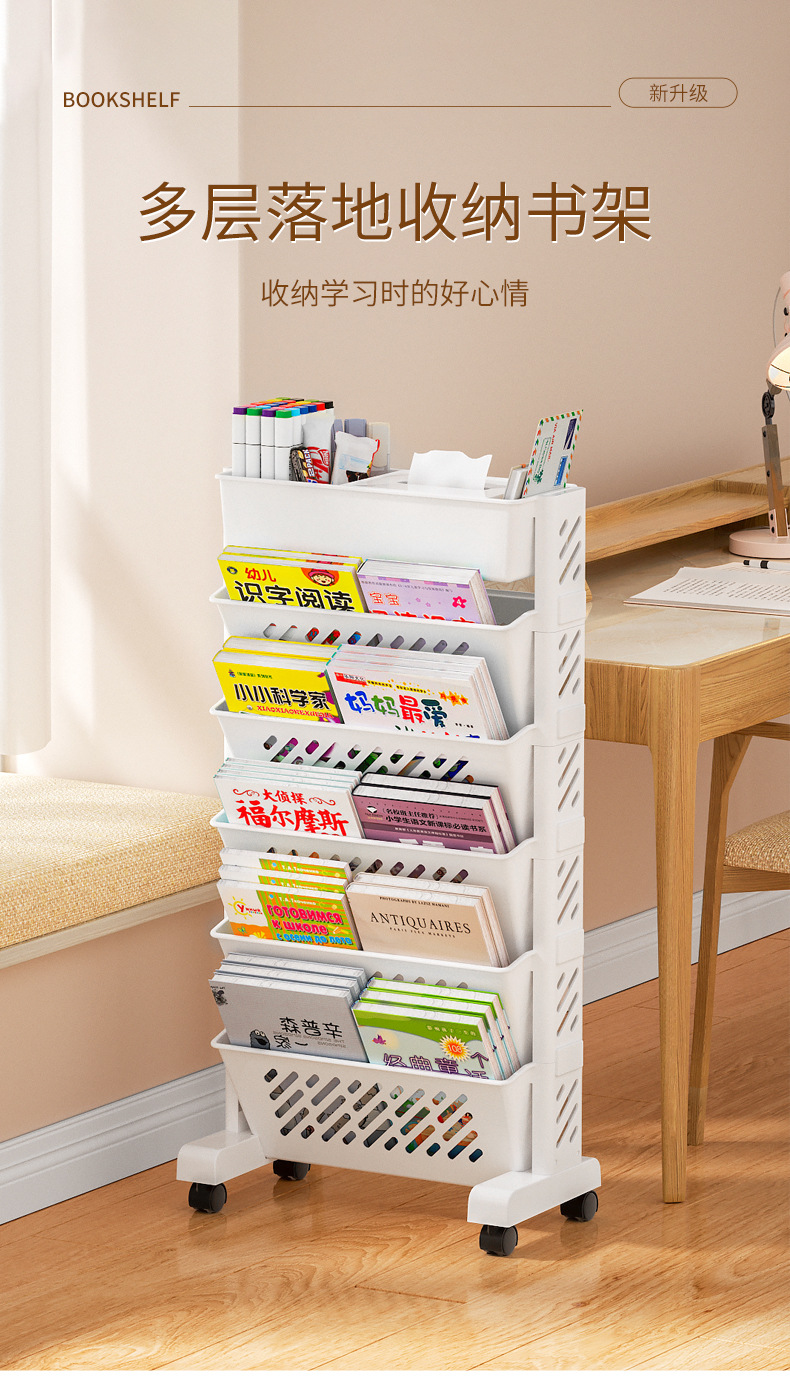 책장 이동식 수납 랙 플로어 스탠딩 가정용 다층 심플 책장 벽 학교 학생 도서 보관 랙
