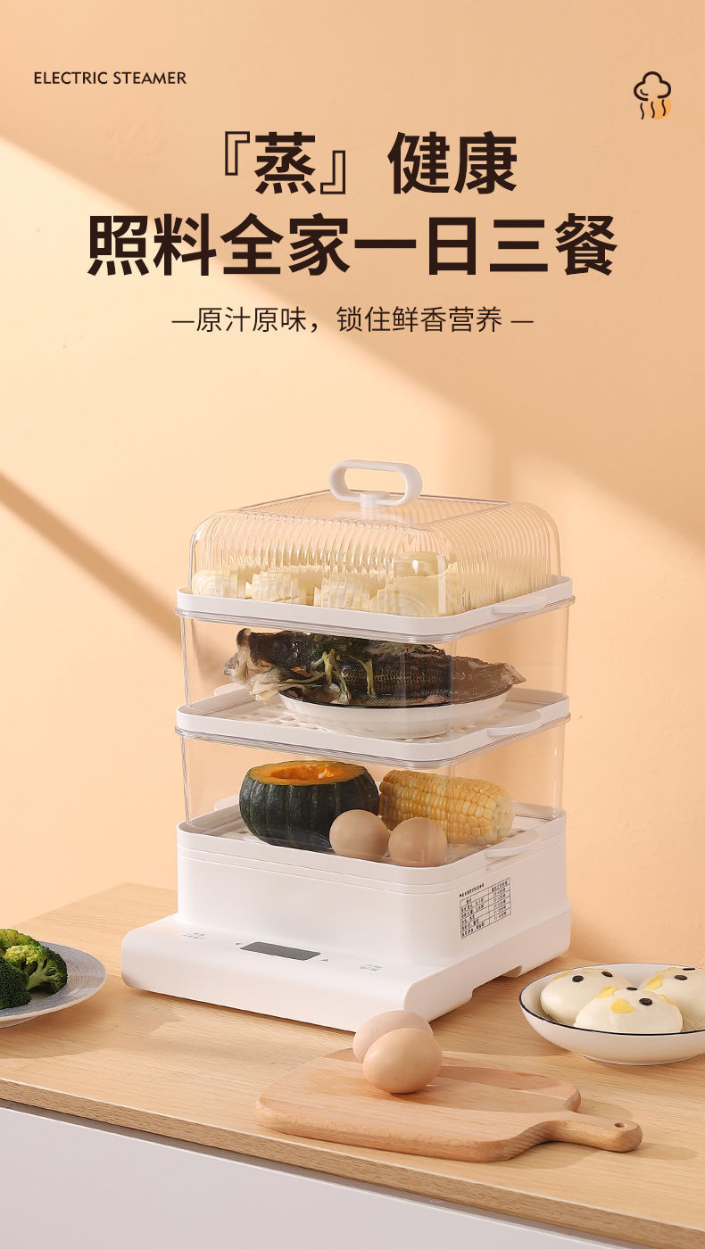 전기 찜기 다기능 두꺼운 가정용 식품 학년 3 층 대용량 찜기 지능형 찐 롤빵 계란 찜기