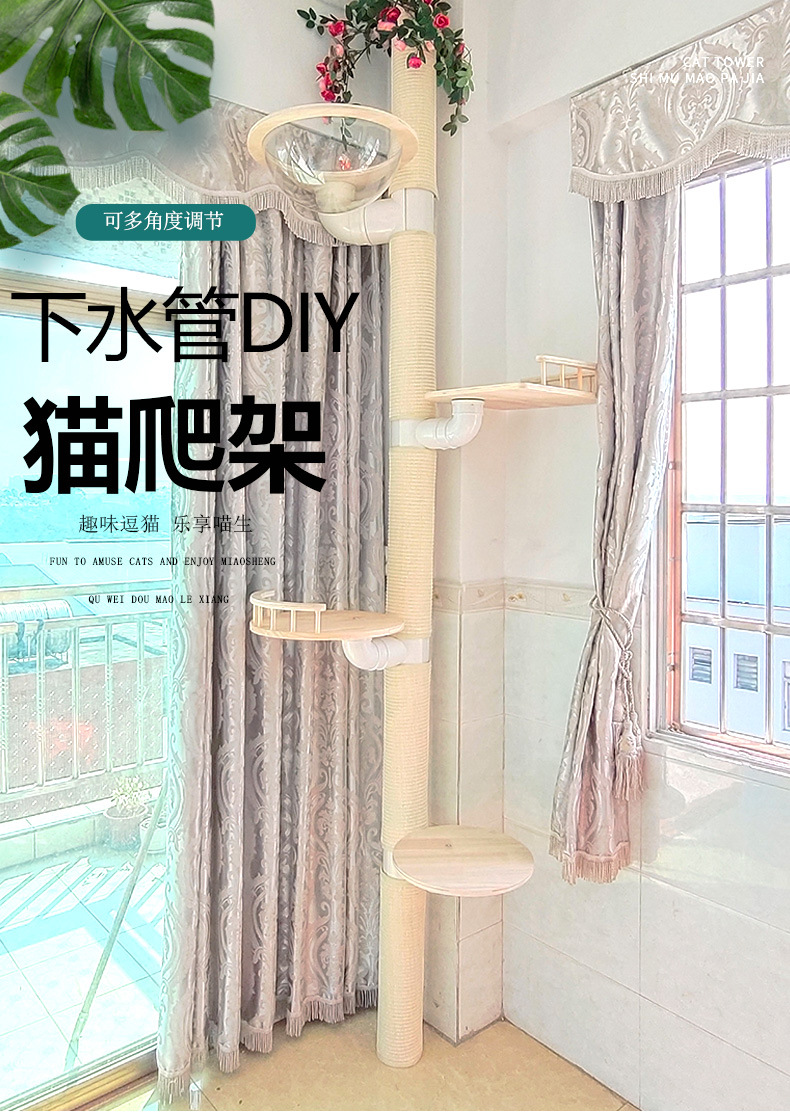 발코니 PVC 다운 코머 변환 고양이 등반 프레임 홈 메이드 DIY 소재 고양이 긁기 고양이 시살 고양이 점프 플랫폼 우주 캡슐스토어 가기