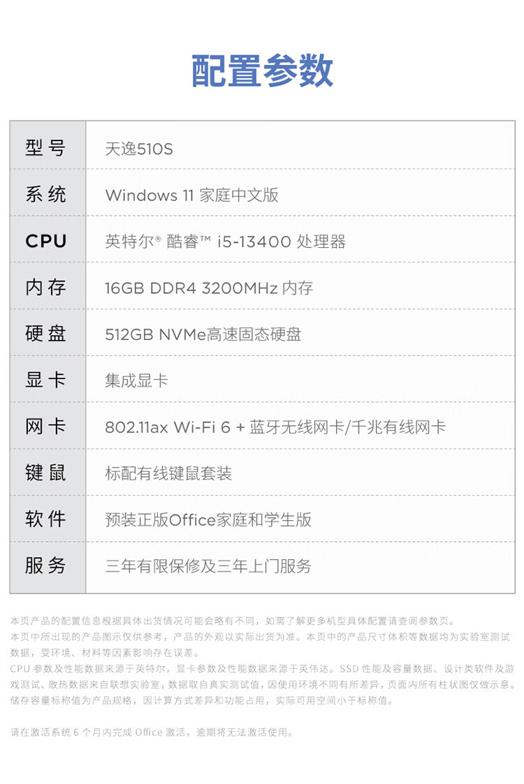 • Tianyi 510S I5-13400 16G 512g wifi w11