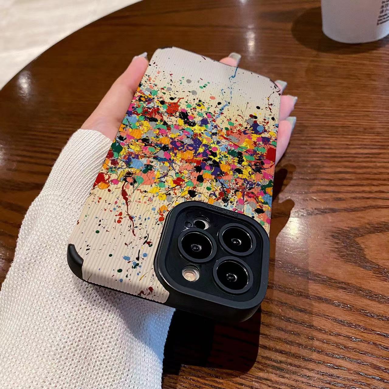 Apple iPhone15ProMax 휴대 전화 케이스 11 안티 드롭 14 틈새 컬러 스플래시 잉크 낙서 모든 것을 포함하는 보호