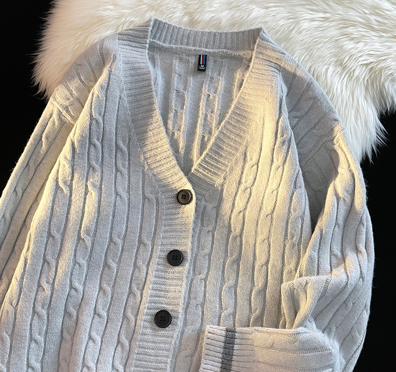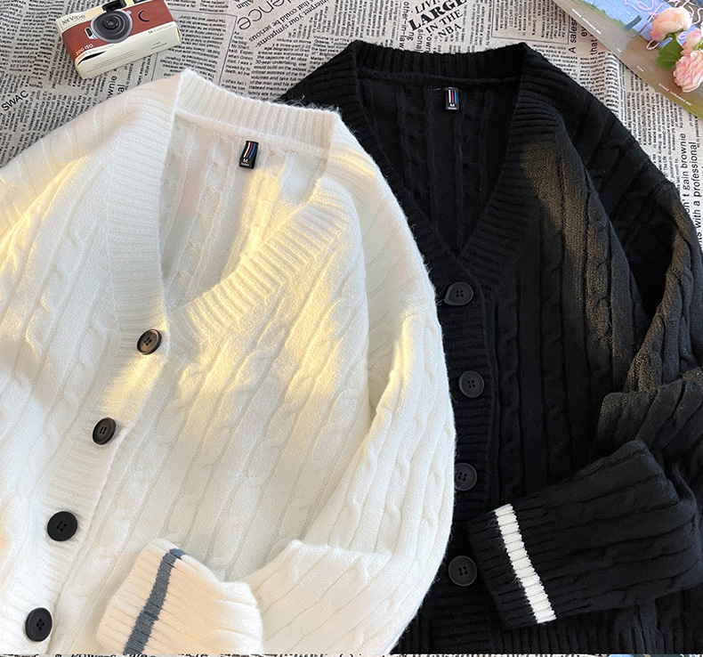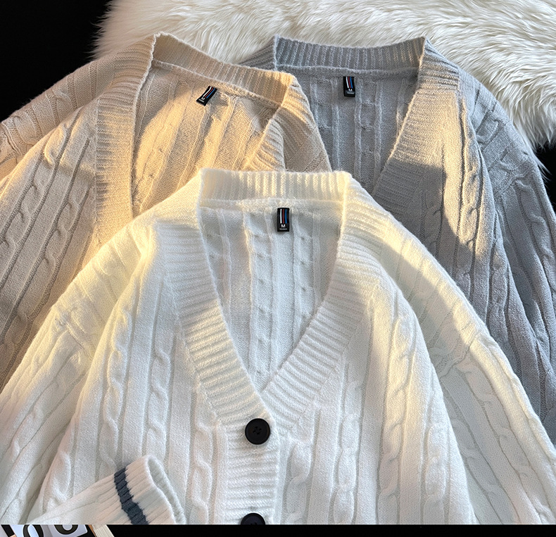 긴팔 가디건 스웨터 남성용 트렌디 브랜드 가을과 겨울 2023 새로운 루즈한 보이즈 베이스 재킷 커플 스웨터스토어 가기