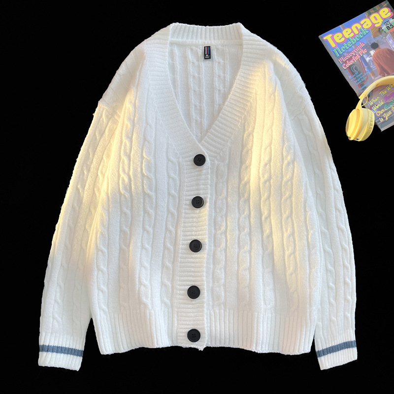 긴팔 가디건 스웨터 남성용 트렌디 브랜드 가을과 겨울 2023 새로운 루즈한 보이즈 베이스 재킷 커플 스웨터