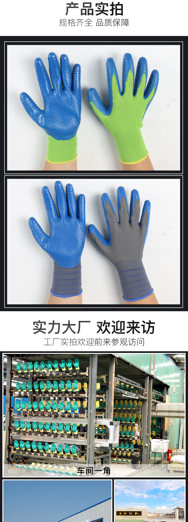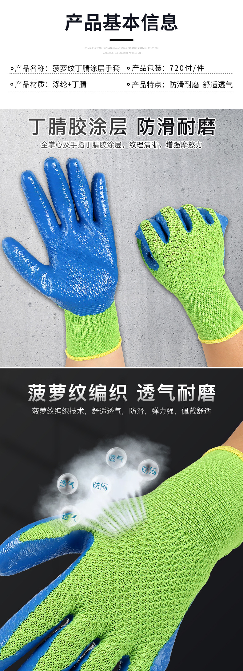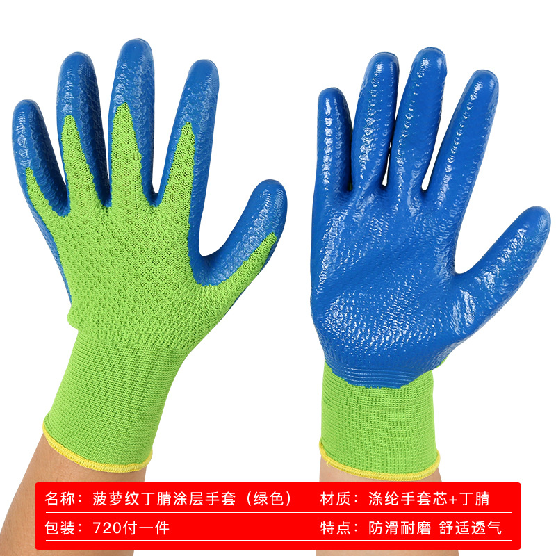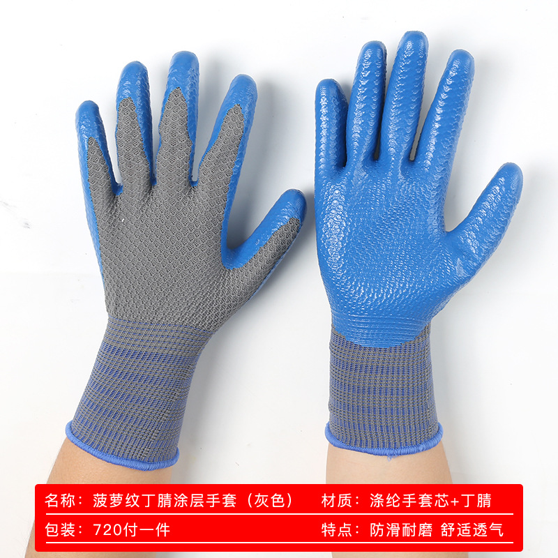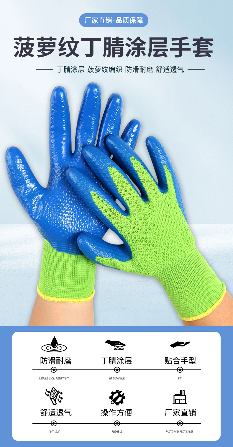 노동 장갑 파인애플 패턴 니트릴 코팅 내마모성 미끄럼 방지 통기성 접착 디퍼 보호 장갑스토어 가기