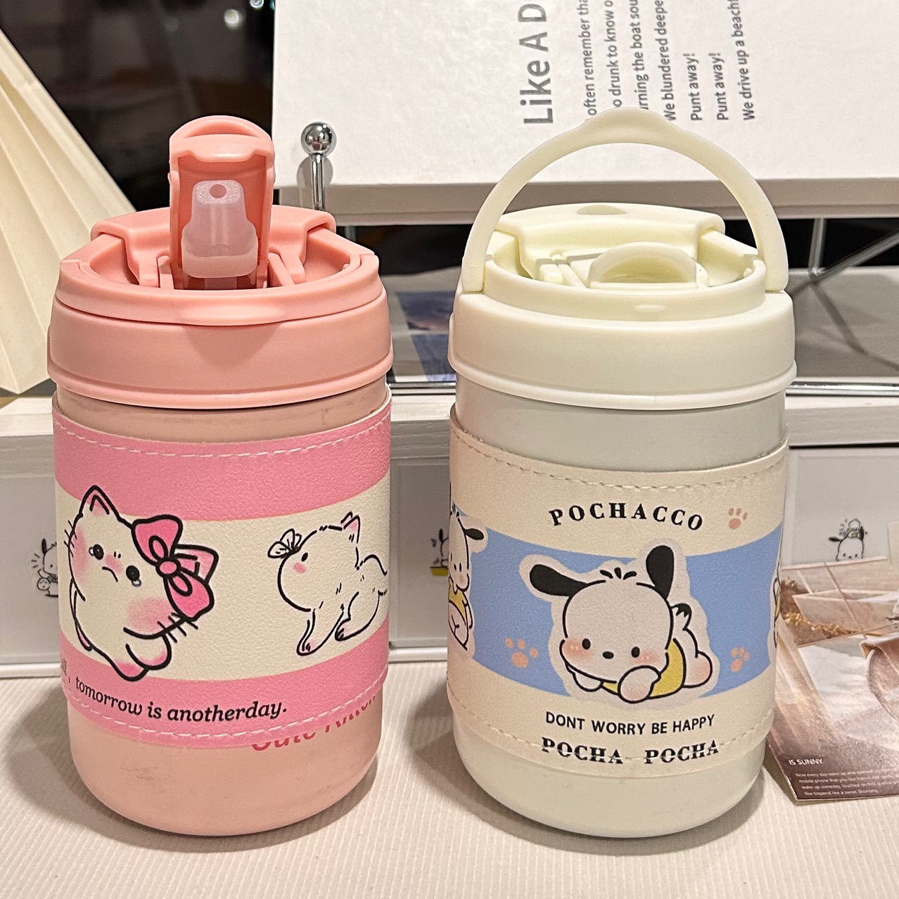 더블 드링크 강아지 보온병 컵 316 스테인리스 스틸 대용량 컵 (여아용 고가의 시피 컵) 휴대용 컵스토어 가기