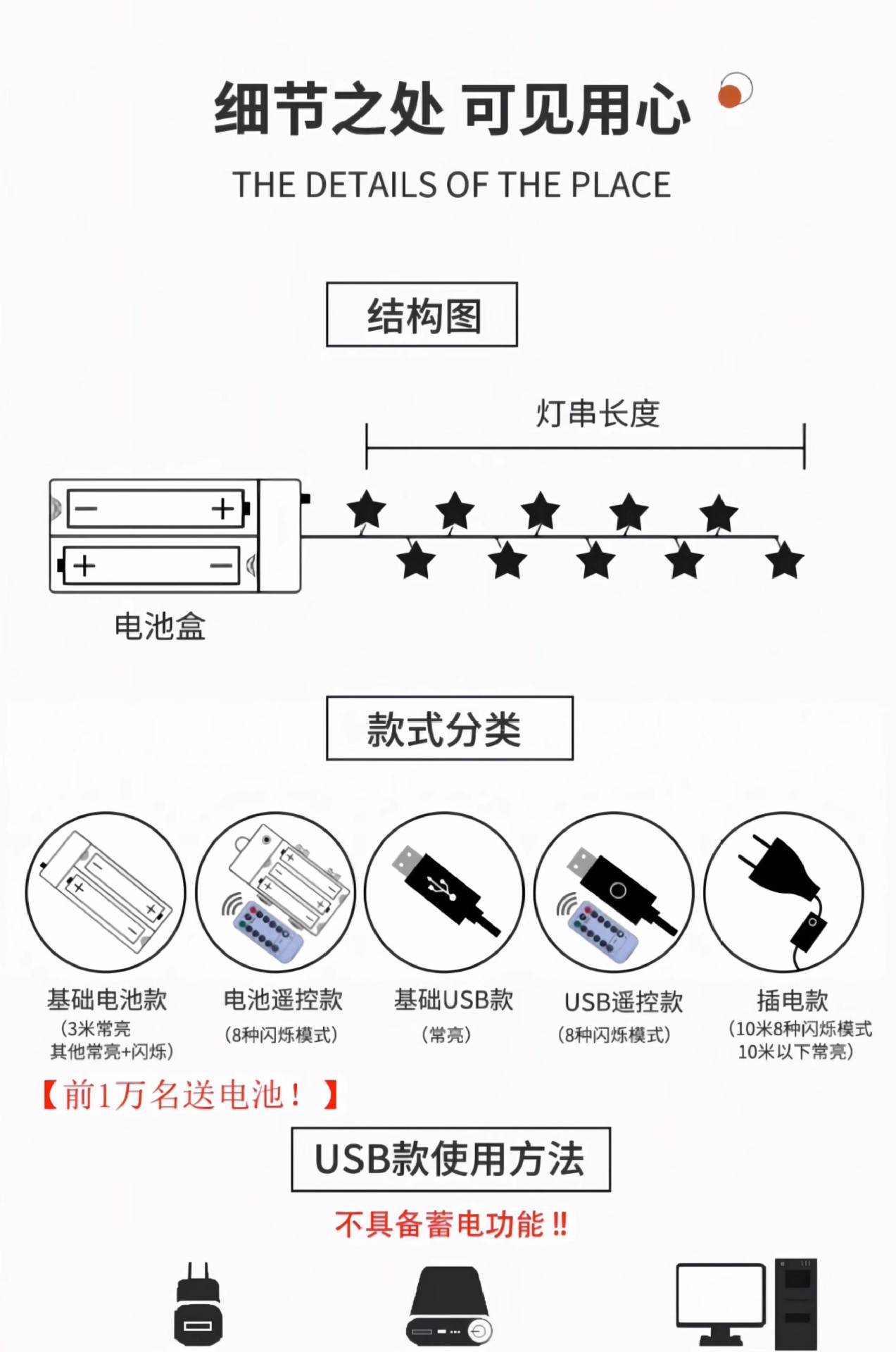 • 1.5 미터 10 조명 USB 항상 켜기