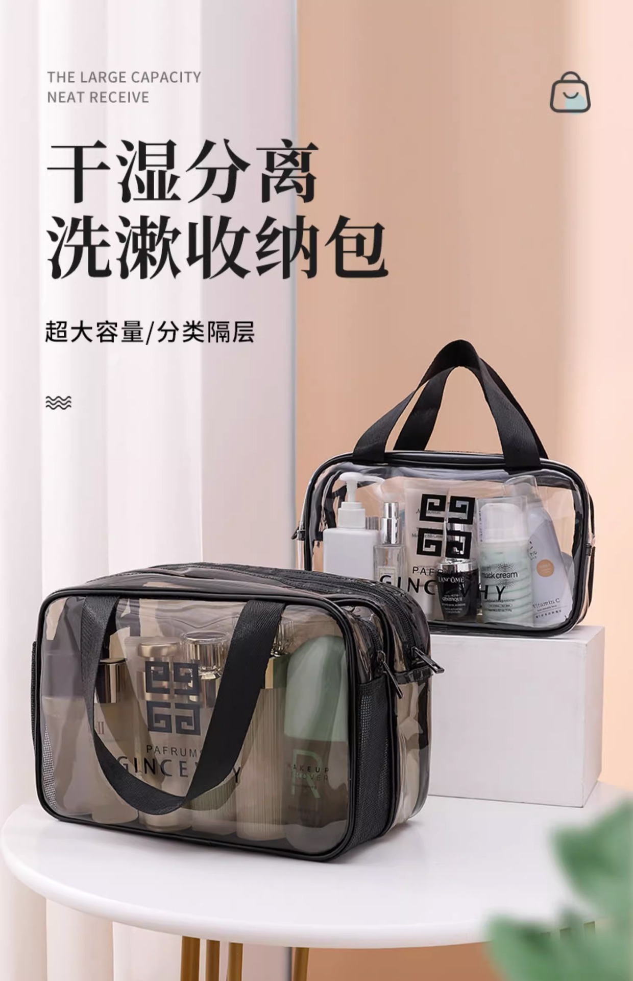 더블 레이어 대형 건조하고 젖은 별도의 화장품 가방 워시 백 여행 가방 휴대용 수하물 가방 여행 가방 수영 가방