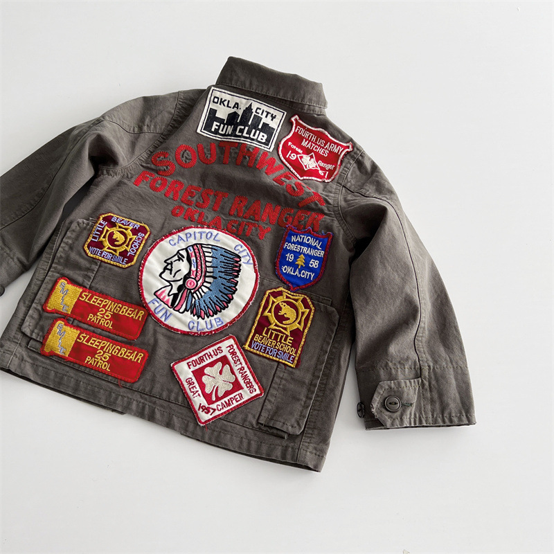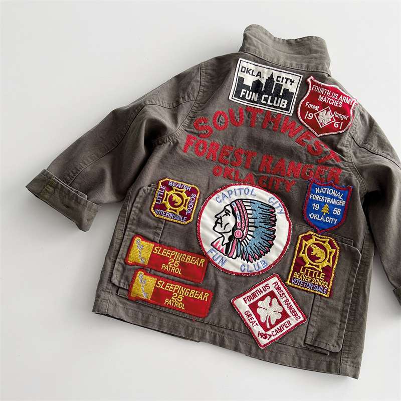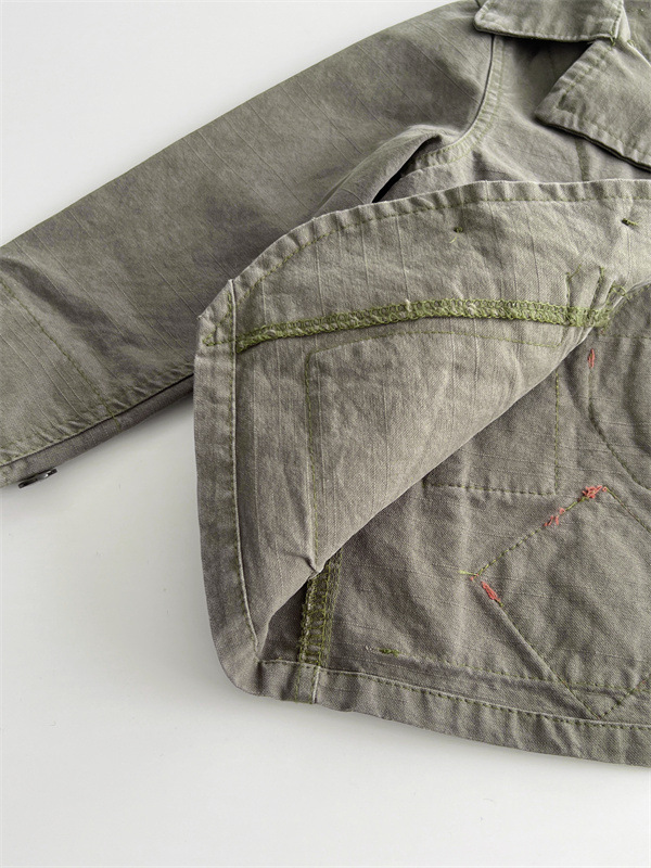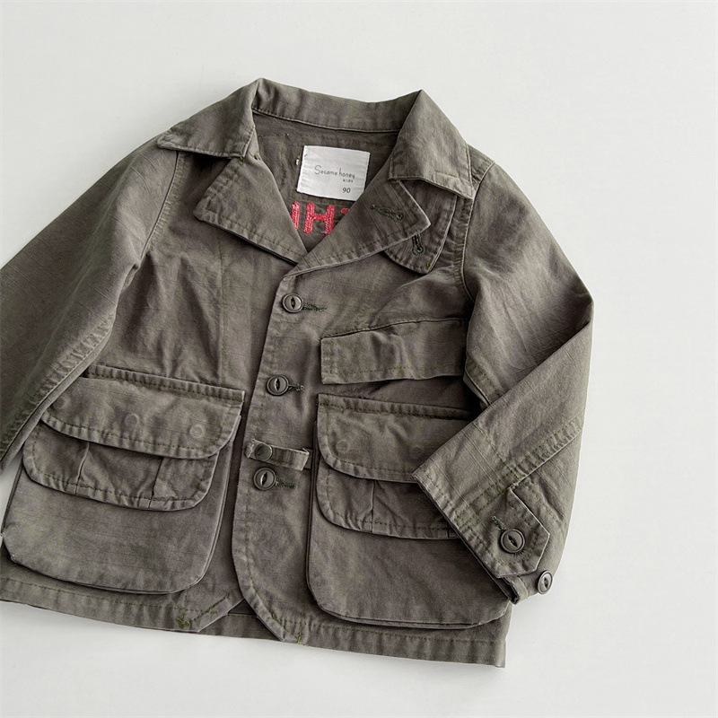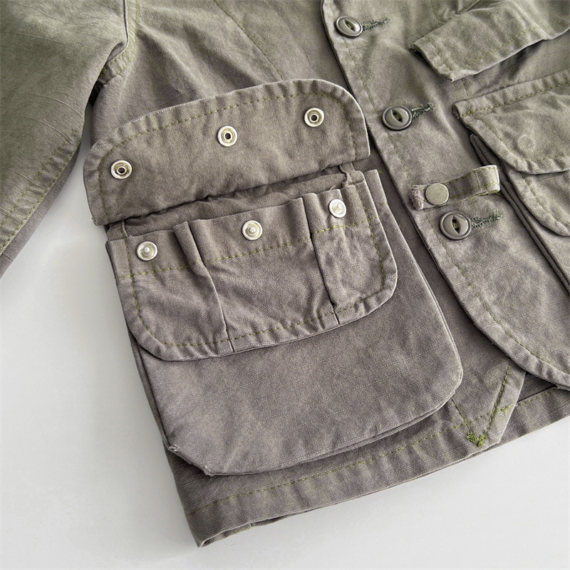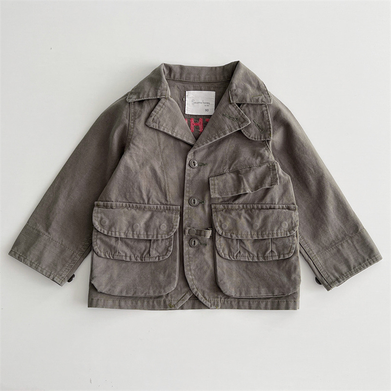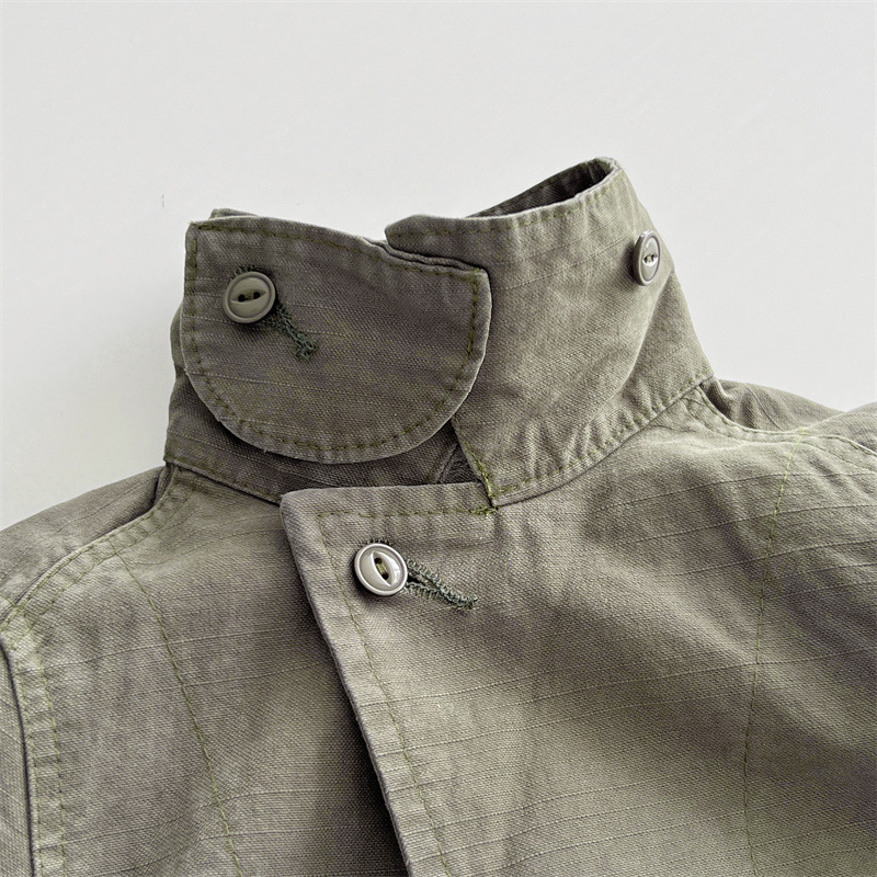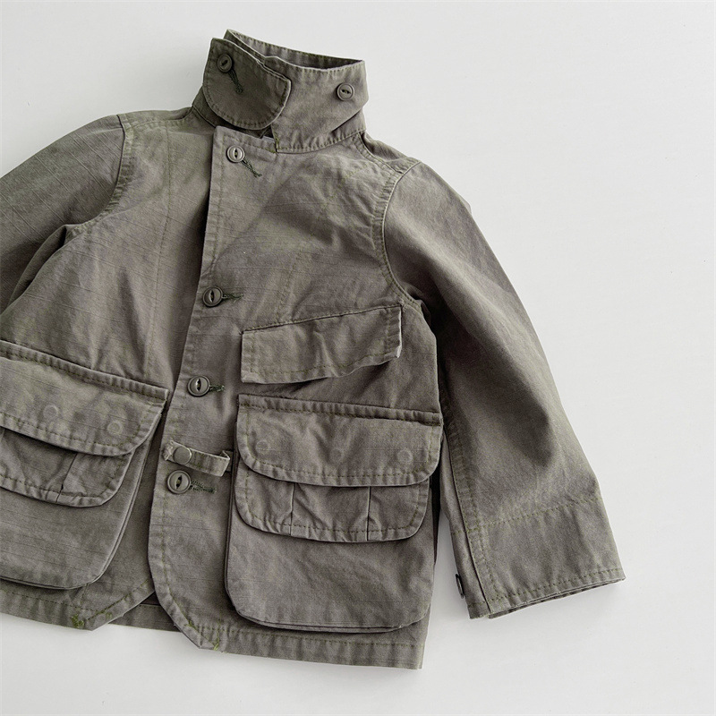 [재고] 일본 중세 아동복 가을과 겨울 DD 어린이 카키 할 오래된 도구 바람 코트 소년 소녀 윈드 브레이커스토어 가기
