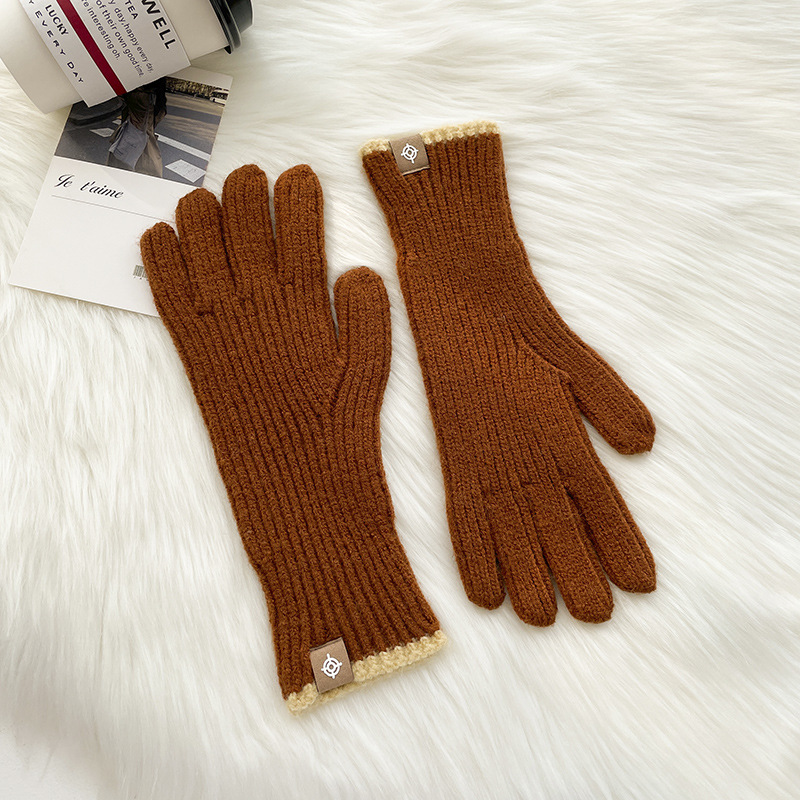 스티칭 스트라이프 울 니트 단색 장갑 가을과 겨울 따뜻한 라이딩을 수집 한 후 손가락 노출 손가락 터치 스크린 라벨스토어 가기