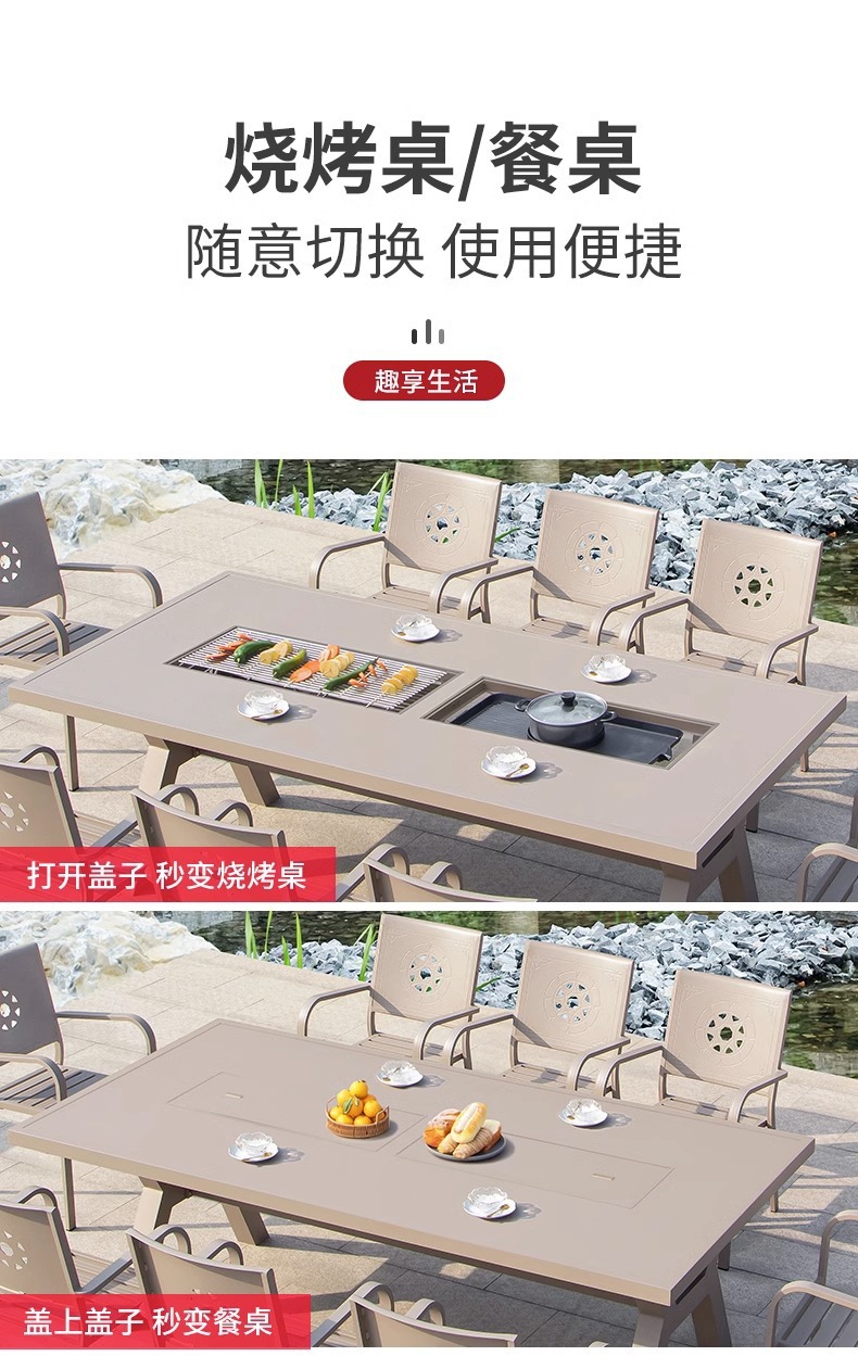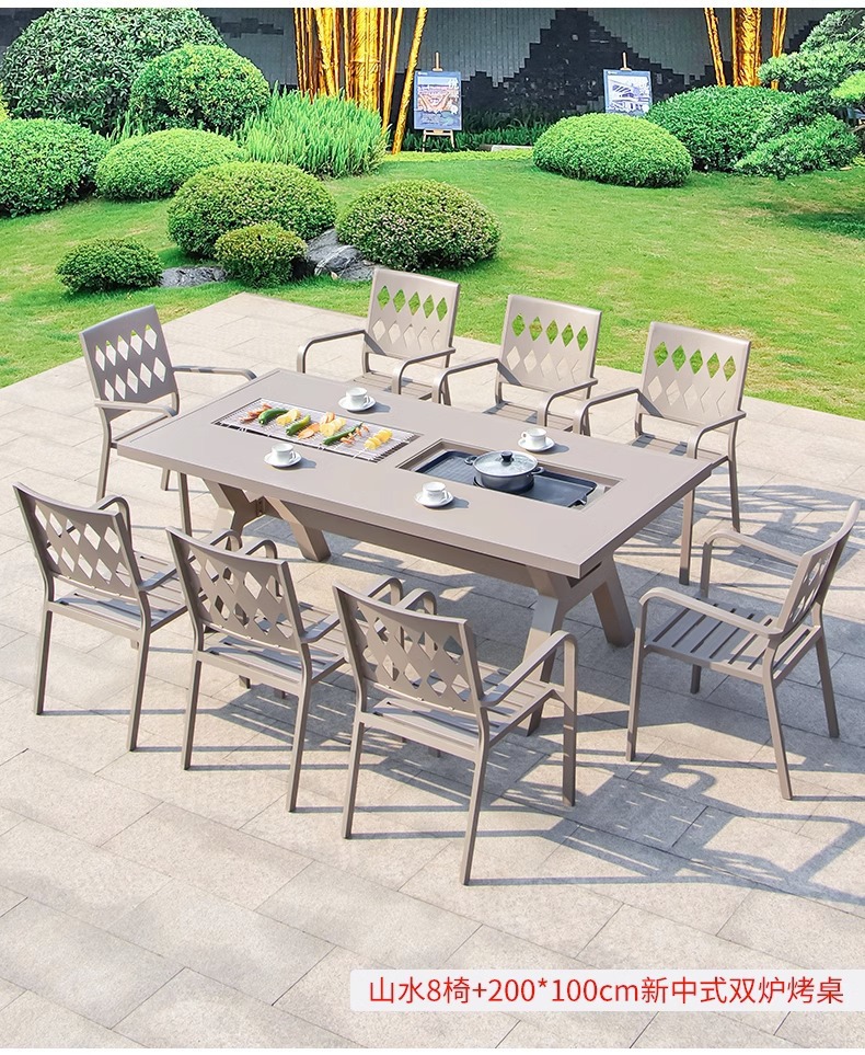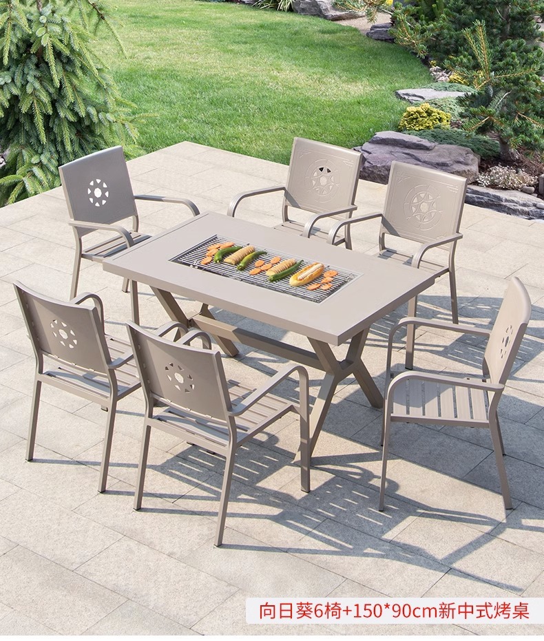 인터넷 유명 브랜드 야외 테이블 및 의자, 주조 알루미늄 바베큐 테이블, 가정용 BBQ 겸용 야외 정원/야외 공간 식탁 및 의자 세트