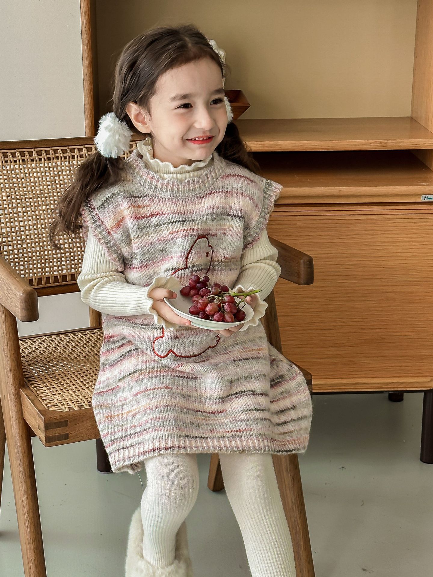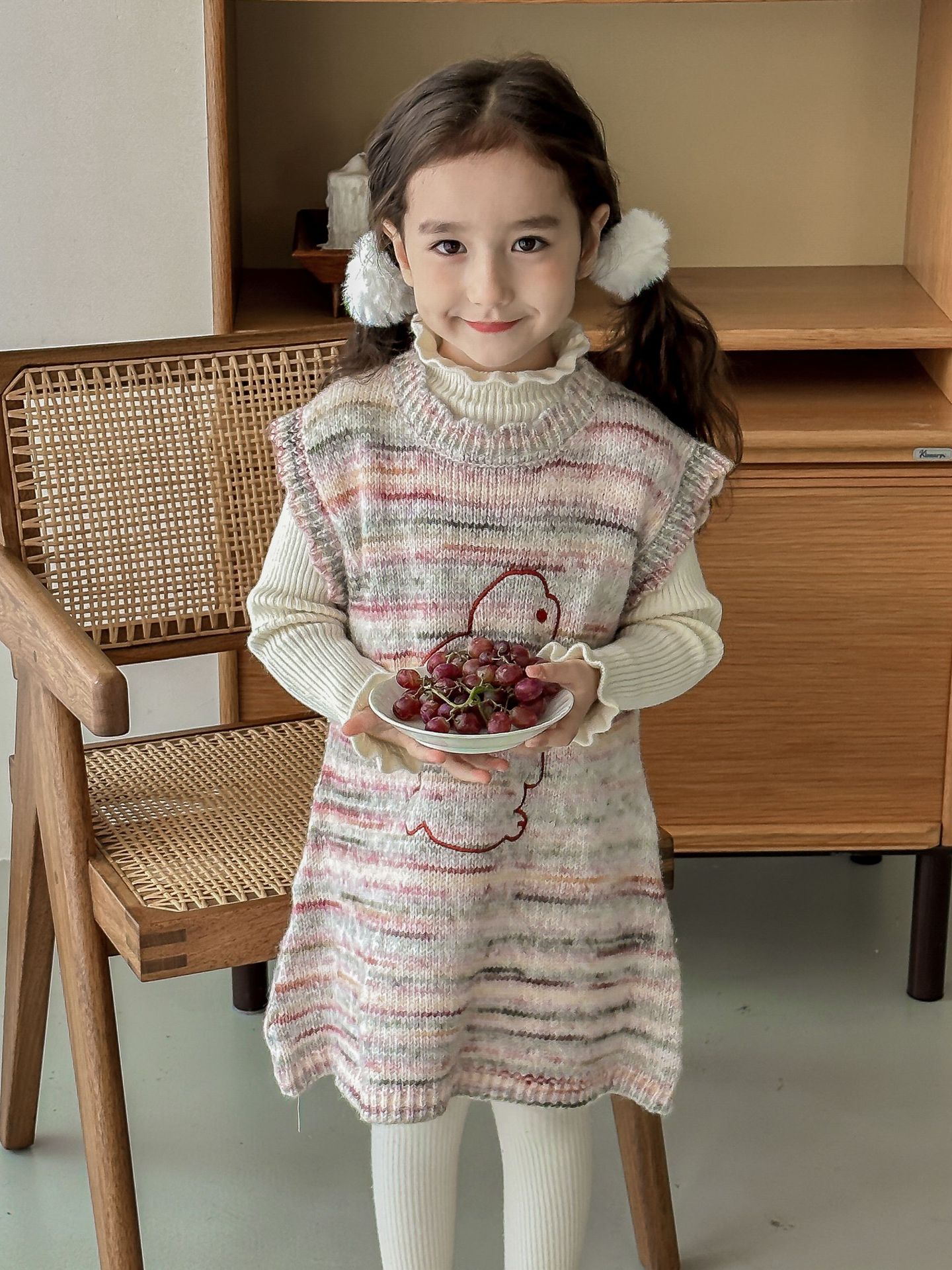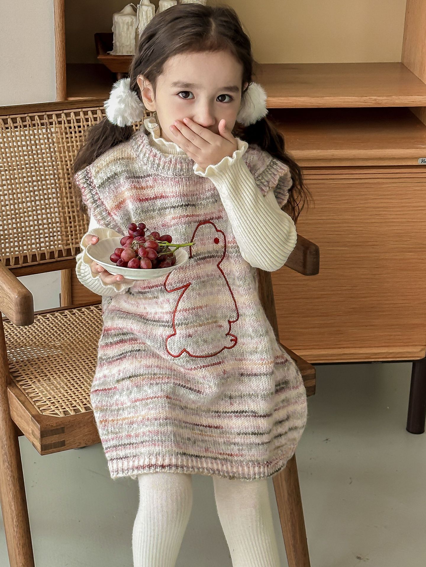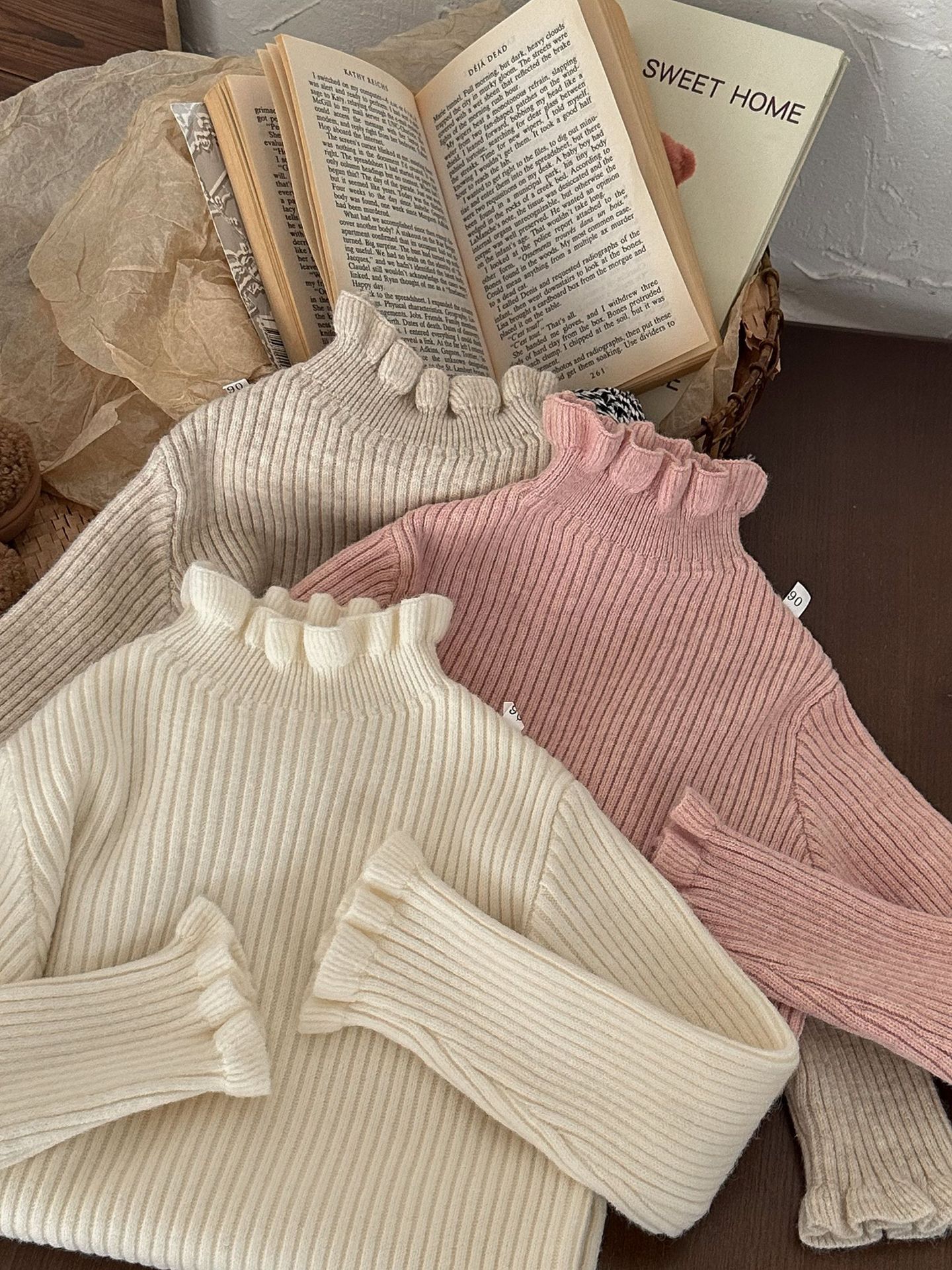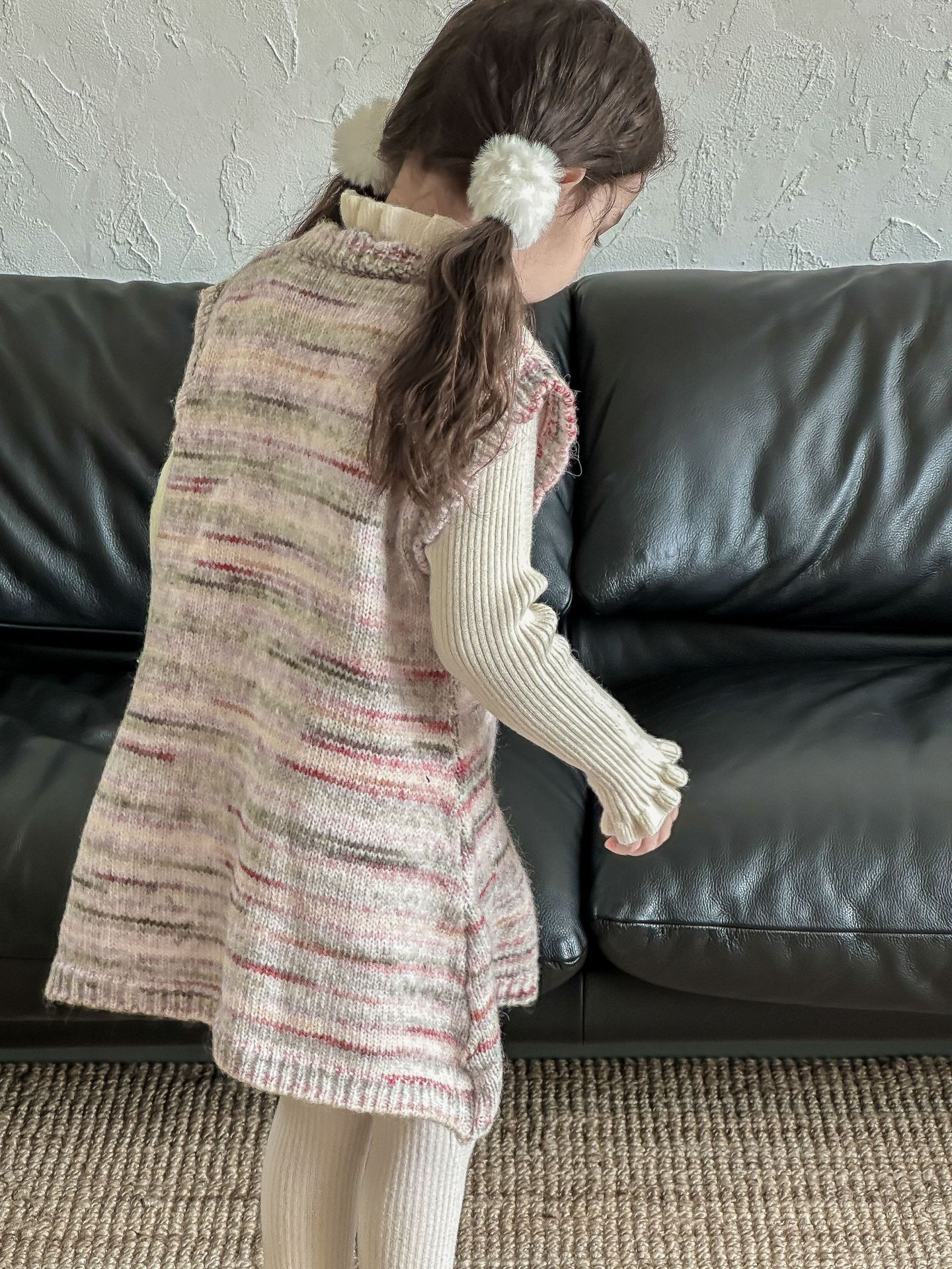 어린이 스웨터 2023 겨울 새로운 어린이 단색 모든 일치 기본 셔츠 소녀 따뜻한 귀 부드러운 왁스 니트 스웨터