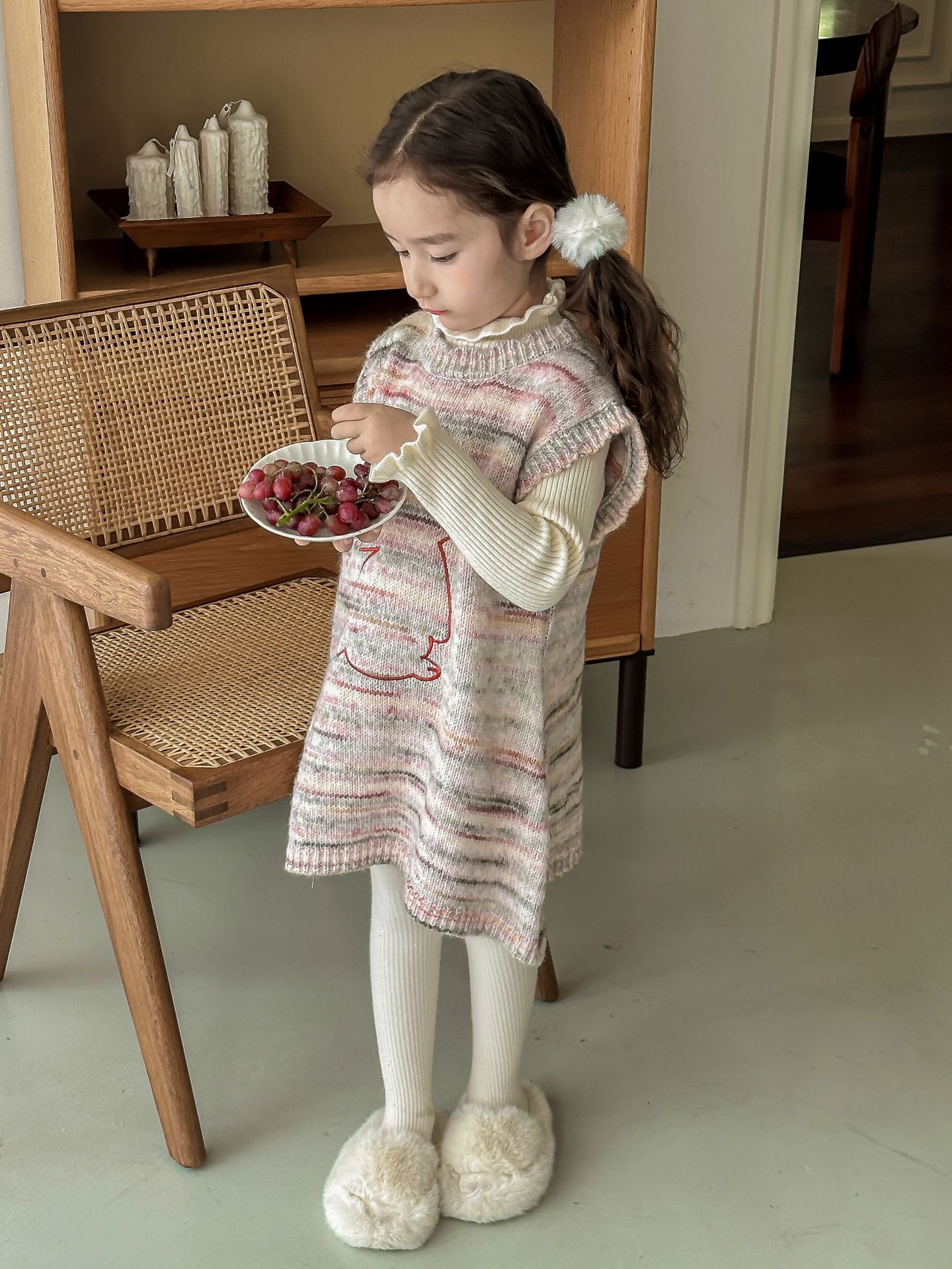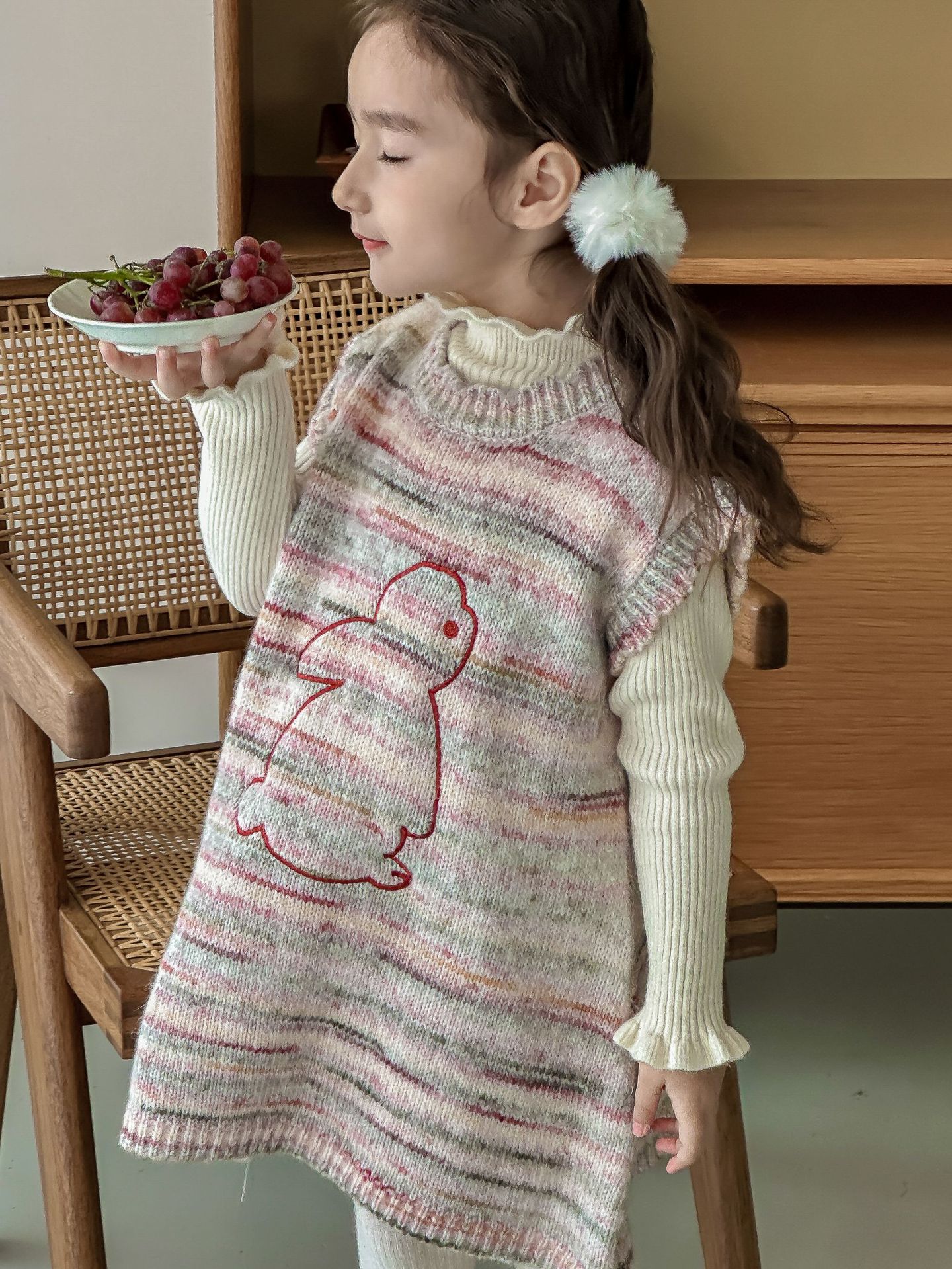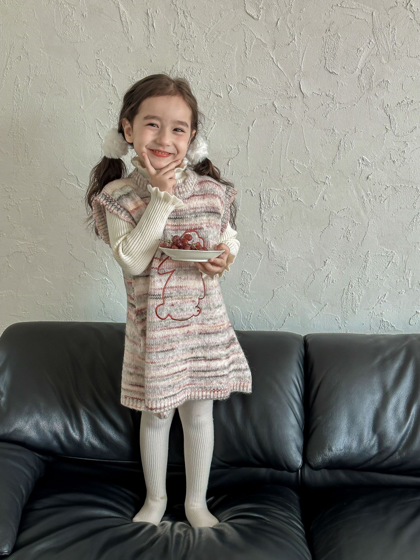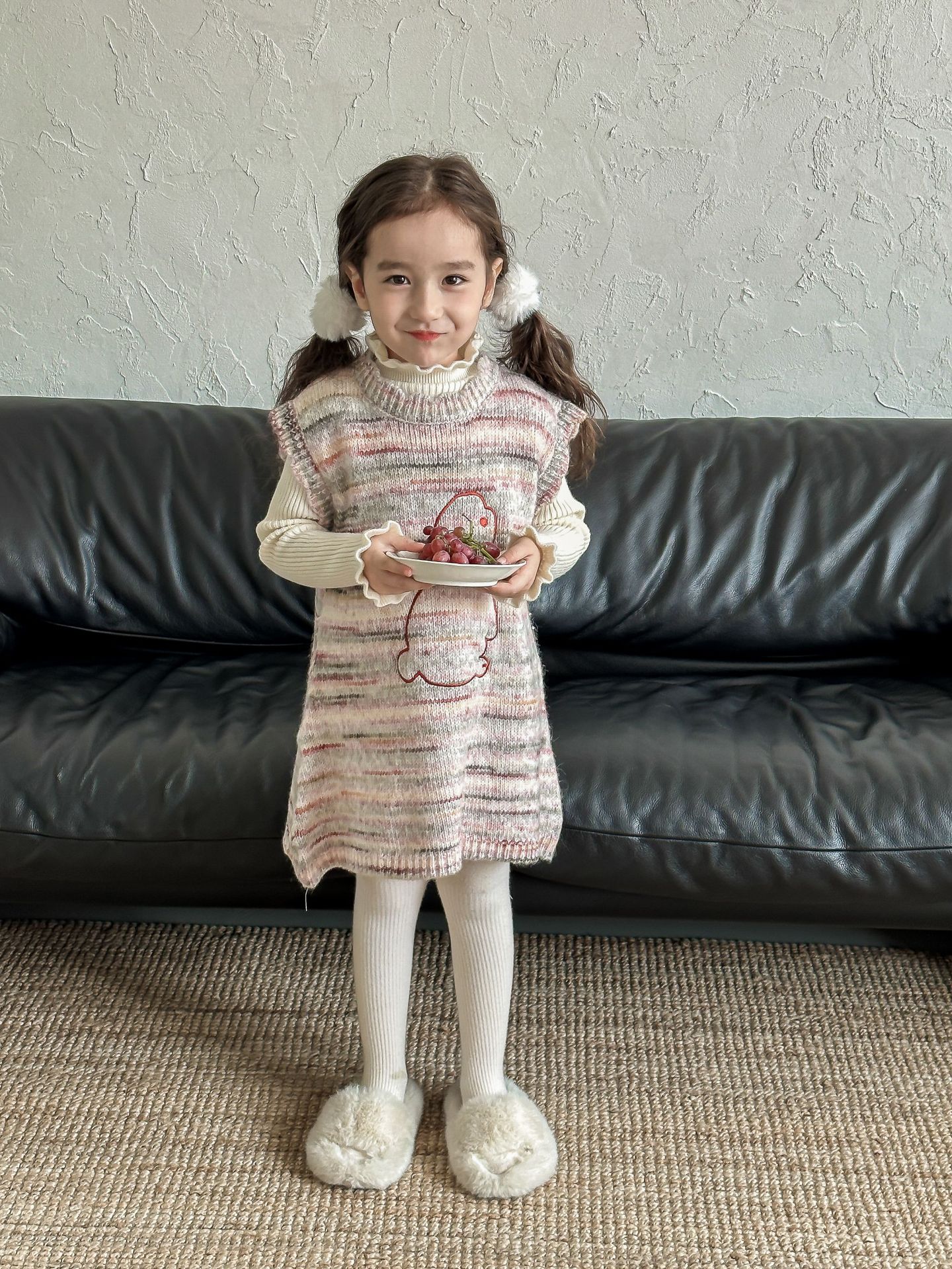 어린이 스웨터 2023 겨울 새로운 어린이 단색 모든 일치 기본 셔츠 소녀 따뜻한 귀 부드러운 왁스 니트 스웨터