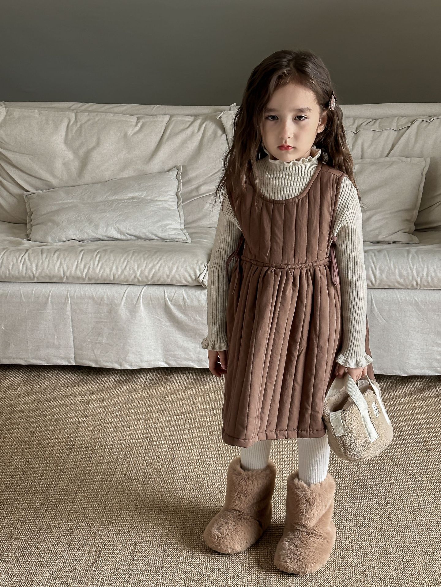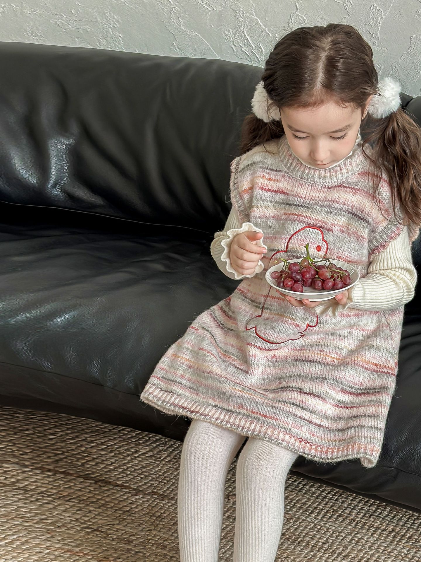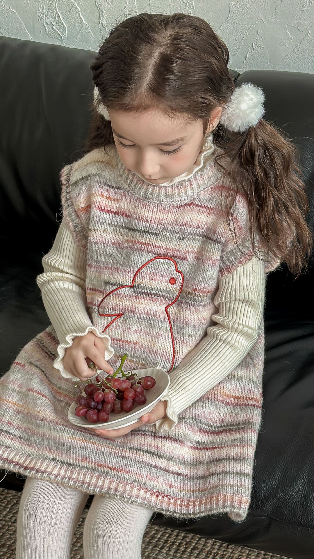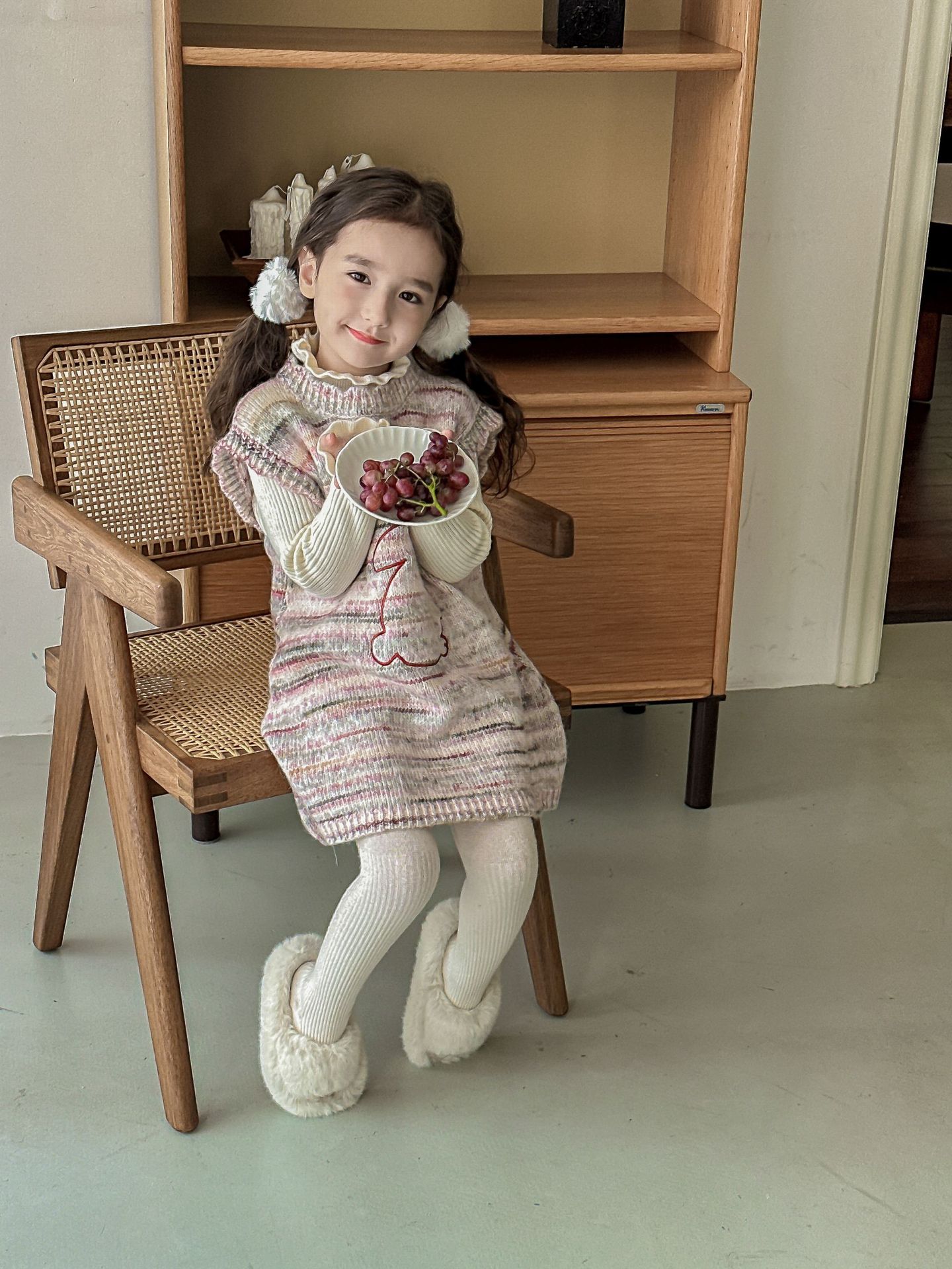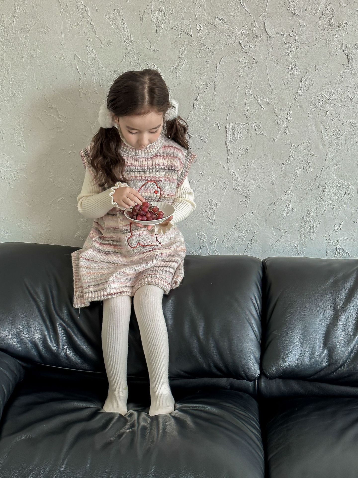 어린이 스웨터 2023 겨울 새로운 어린이 단색 모든 일치 기본 셔츠 소녀 따뜻한 귀 부드러운 왁스 니트 스웨터