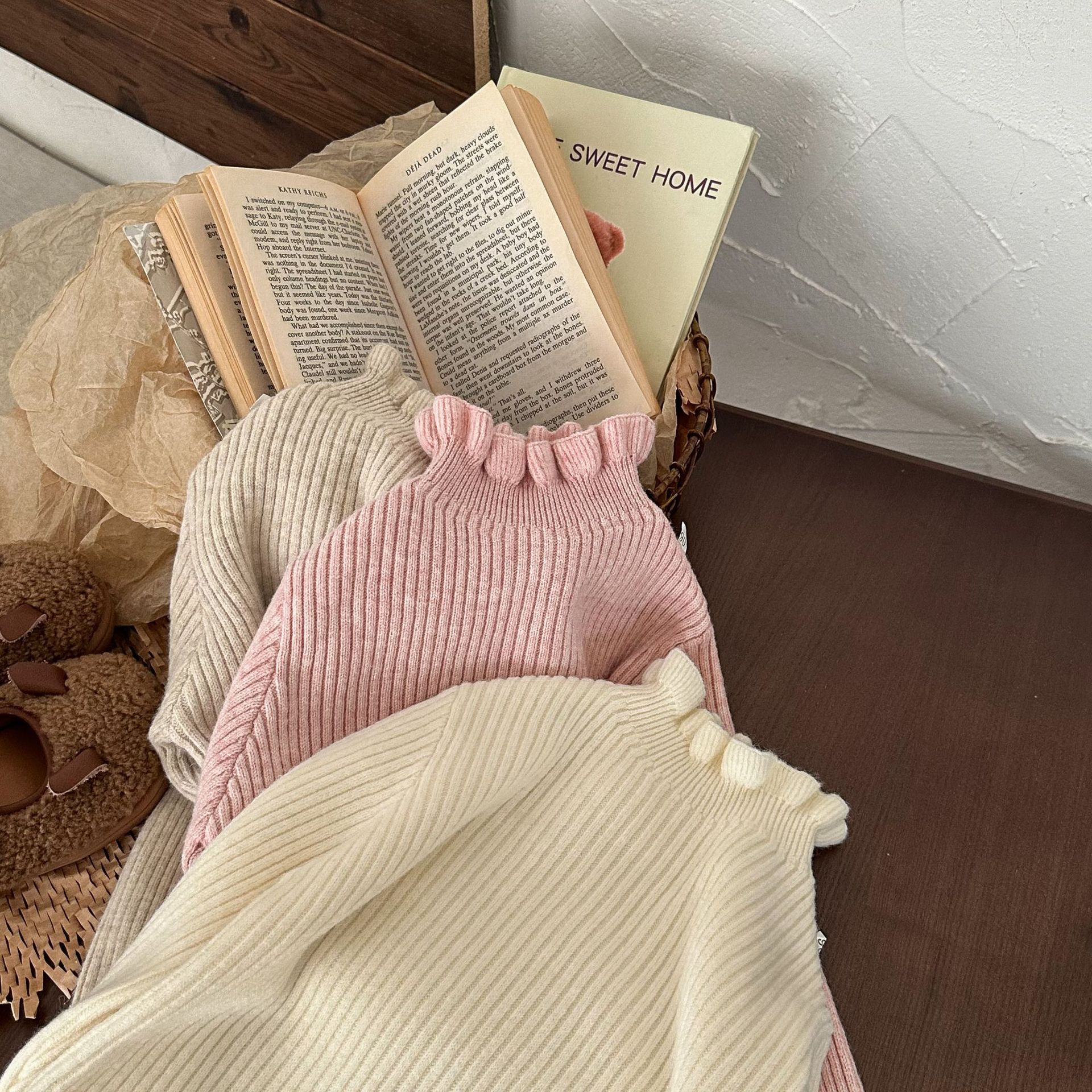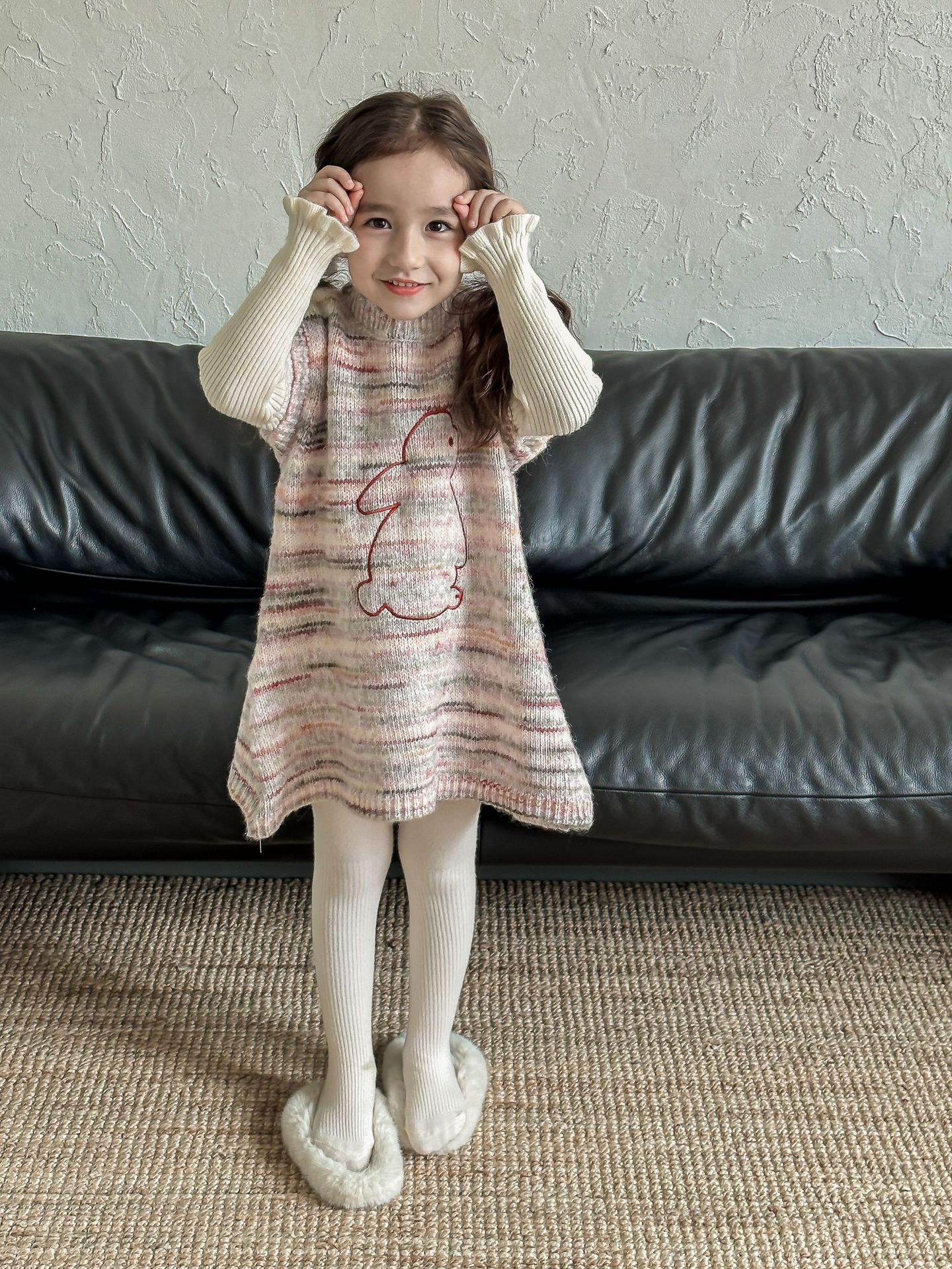 어린이 스웨터 2023 겨울 새로운 어린이 단색 모든 일치 기본 셔츠 소녀 따뜻한 귀 부드러운 왁스 니트 스웨터스토어 가기