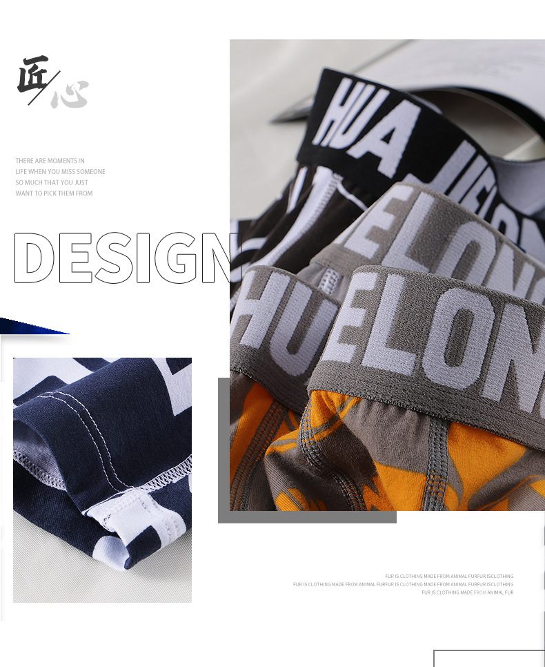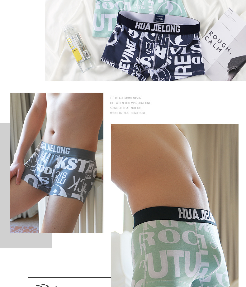 Huajilong 새로운 국가 패션 남성 속옷 면 속옷 인쇄 청소년 복서 미드 웨이스트 4 코너 남성 반바지스토어 가기