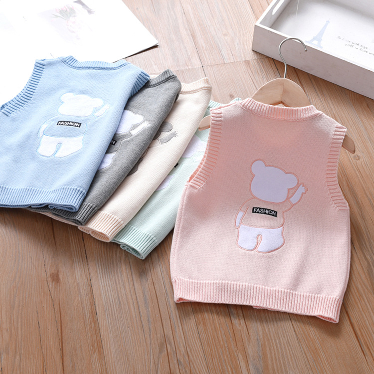 어린이 니트 조끼 가을, 겨울 2024 새로운 스타일 소년과 소녀 카디건 자수 어린이 아기 면화 조끼스토어 가기
