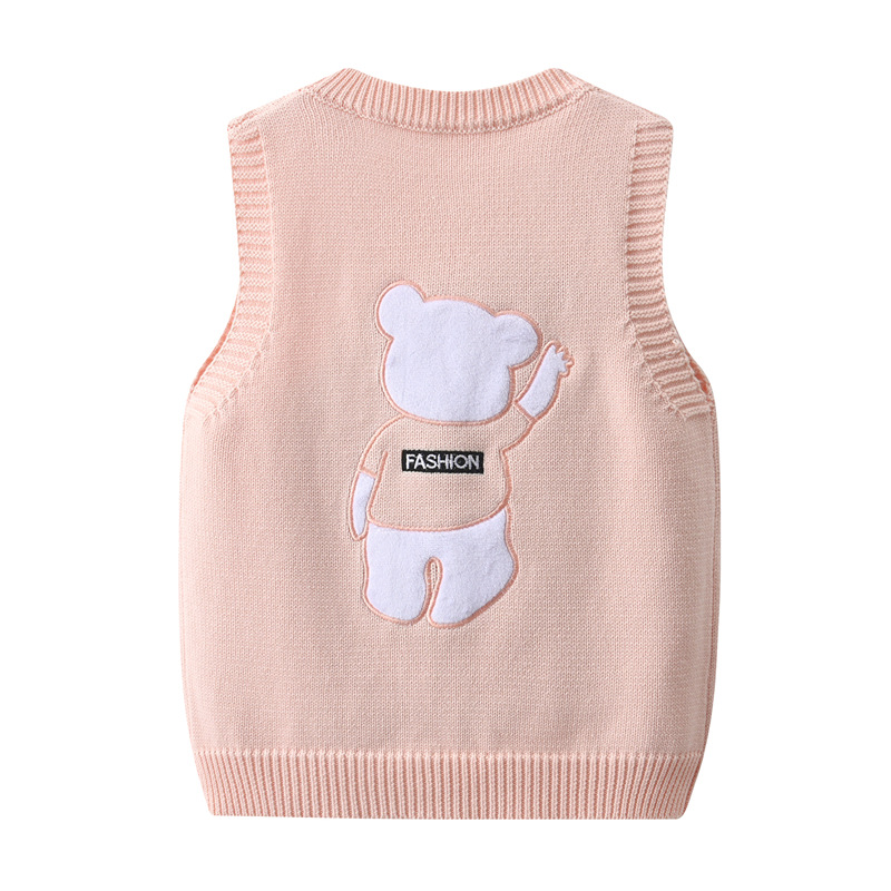 어린이 니트 조끼 가을, 겨울 2024 새로운 스타일 소년과 소녀 카디건 자수 어린이 아기 면화 조끼